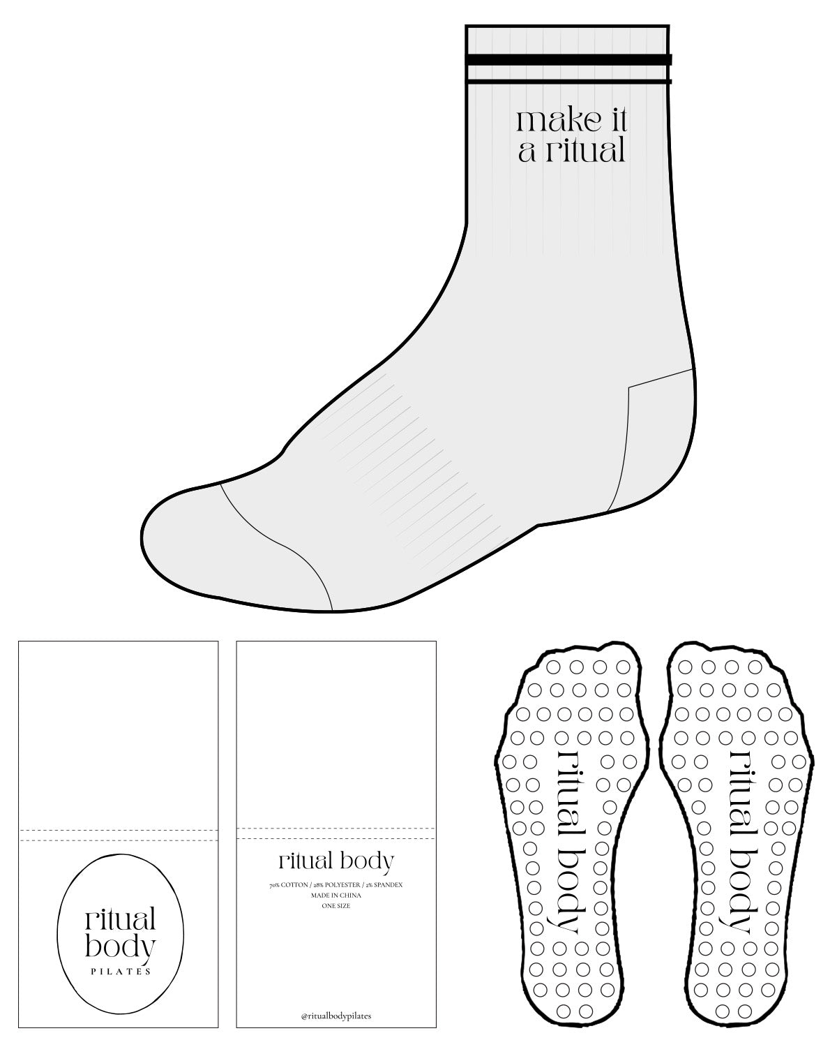 The 3/4 Crew Sock - Black - Ritual Body - Top Stacked & White Circle Grip - White