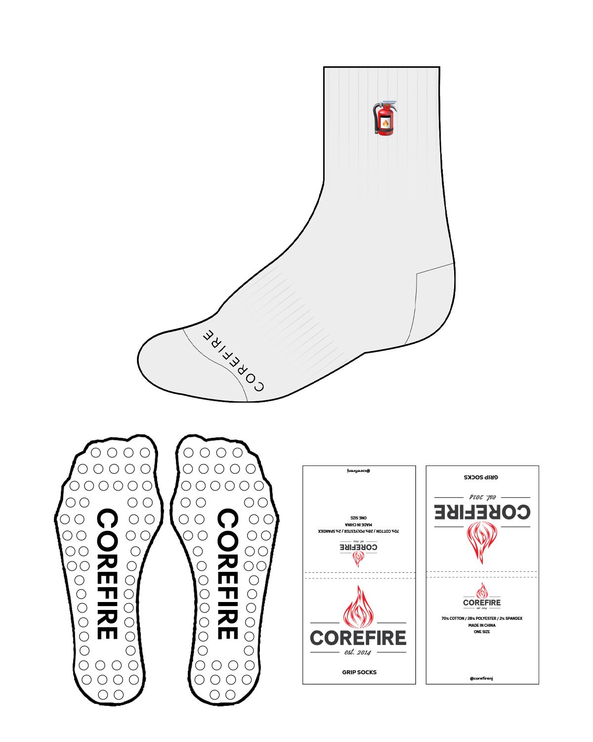 The 3/4 Crew Sock - Heather - Corefire - Top Icon center & Bottom Center - Embroidered - Flame Extinguisher - Black