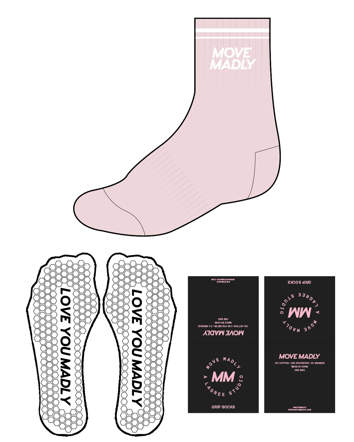 The 3/4 Crew Sock - Light Pink L59 - Move Madly - 2 Lines - Center Stacked - White - Hexagon Shape - Grip - White