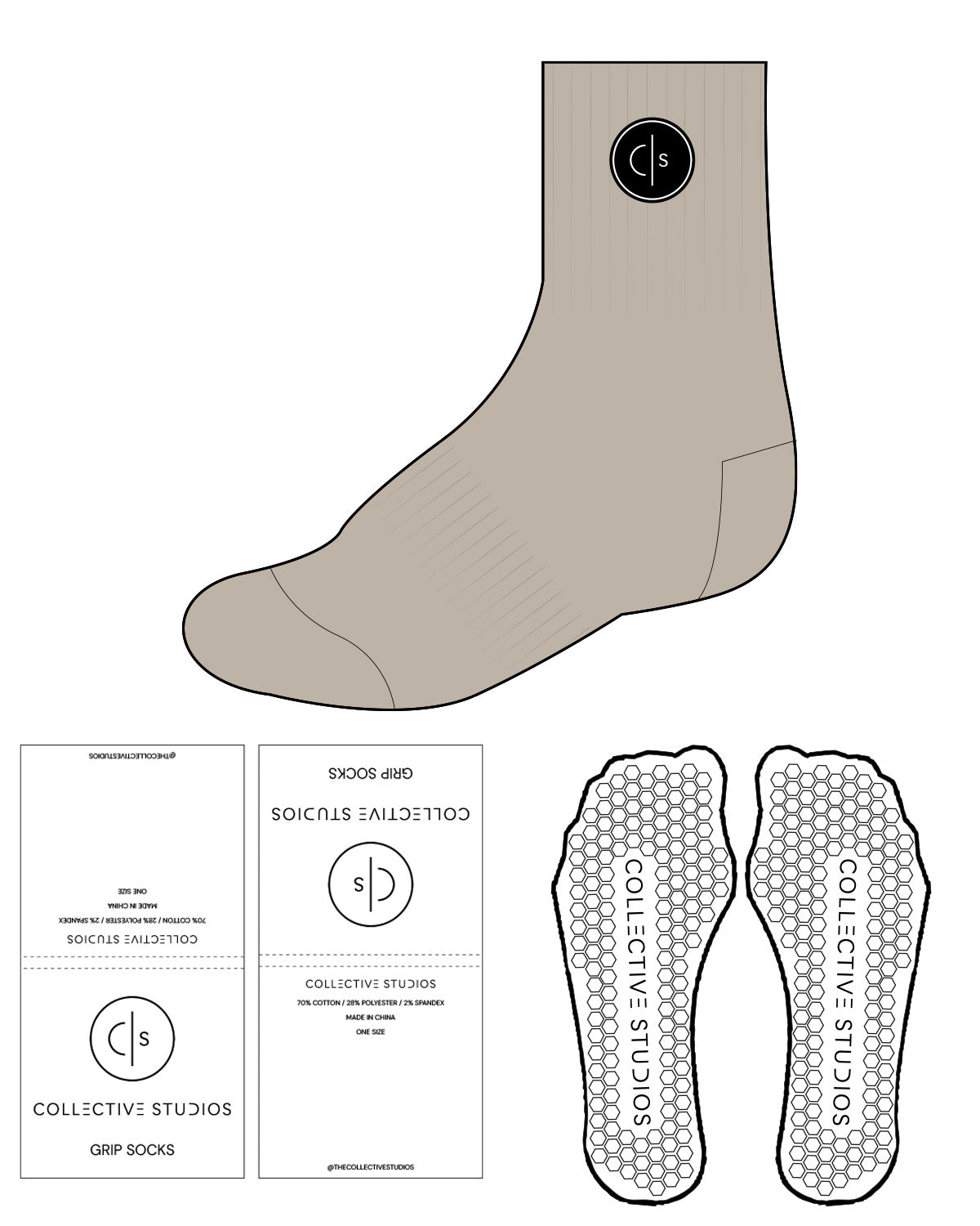 The 3/4 Crew Sock - Tan - Collective Studios - Top Center Icon - Hexagon Grip - Embroidered Full Color