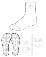 Home / Products / The 3/4 Crew Sock - White - Core Ritual - Top Center Round Icon & Bottom Text - Black Circle Grip