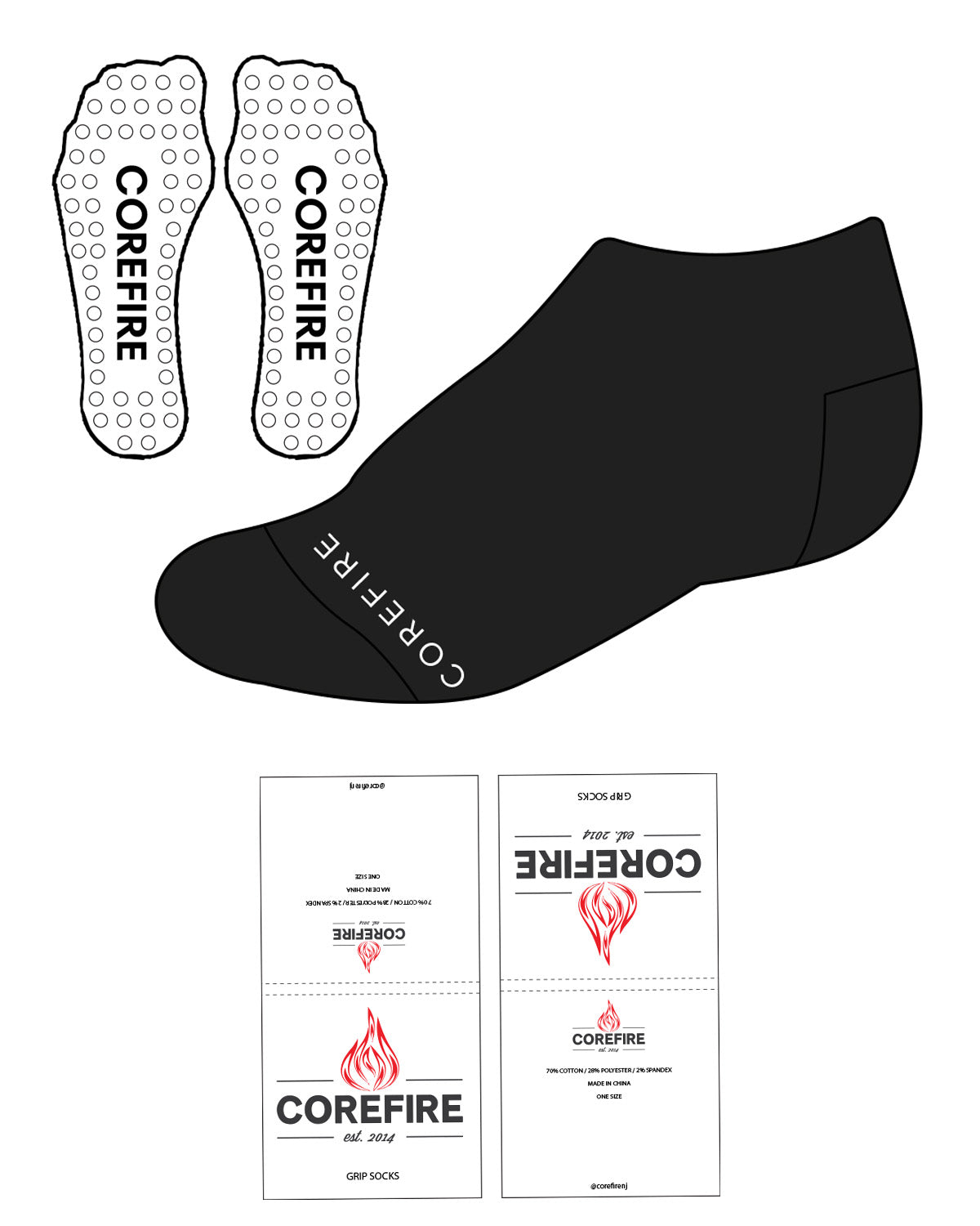 The Ankle Sock - Black - Corefire - Bottom Center - White