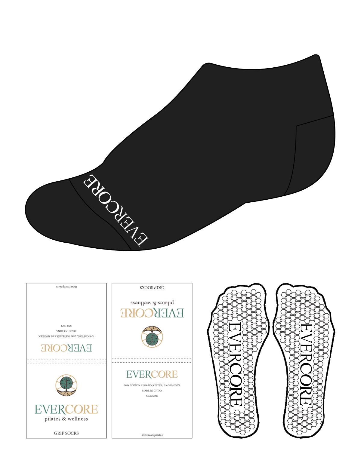 The Ankle Sock - Black - EVERCORE - Front Tip & Hexagon Grip - White