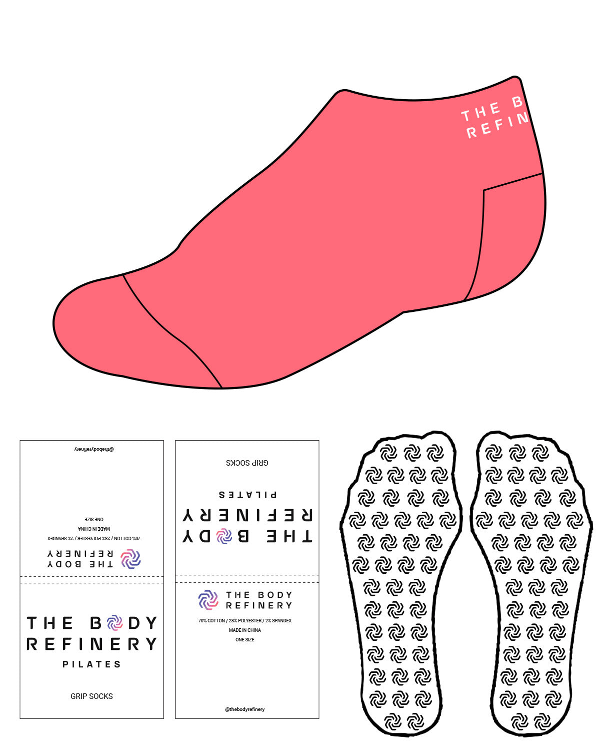 The Ankle Sock - Coral - The Body Refinery - Top & Custom Grip - White