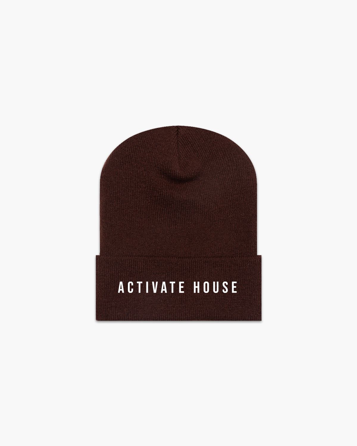 The Beanie - Brown - Activate House - Center - Full Text - Embroidered - White