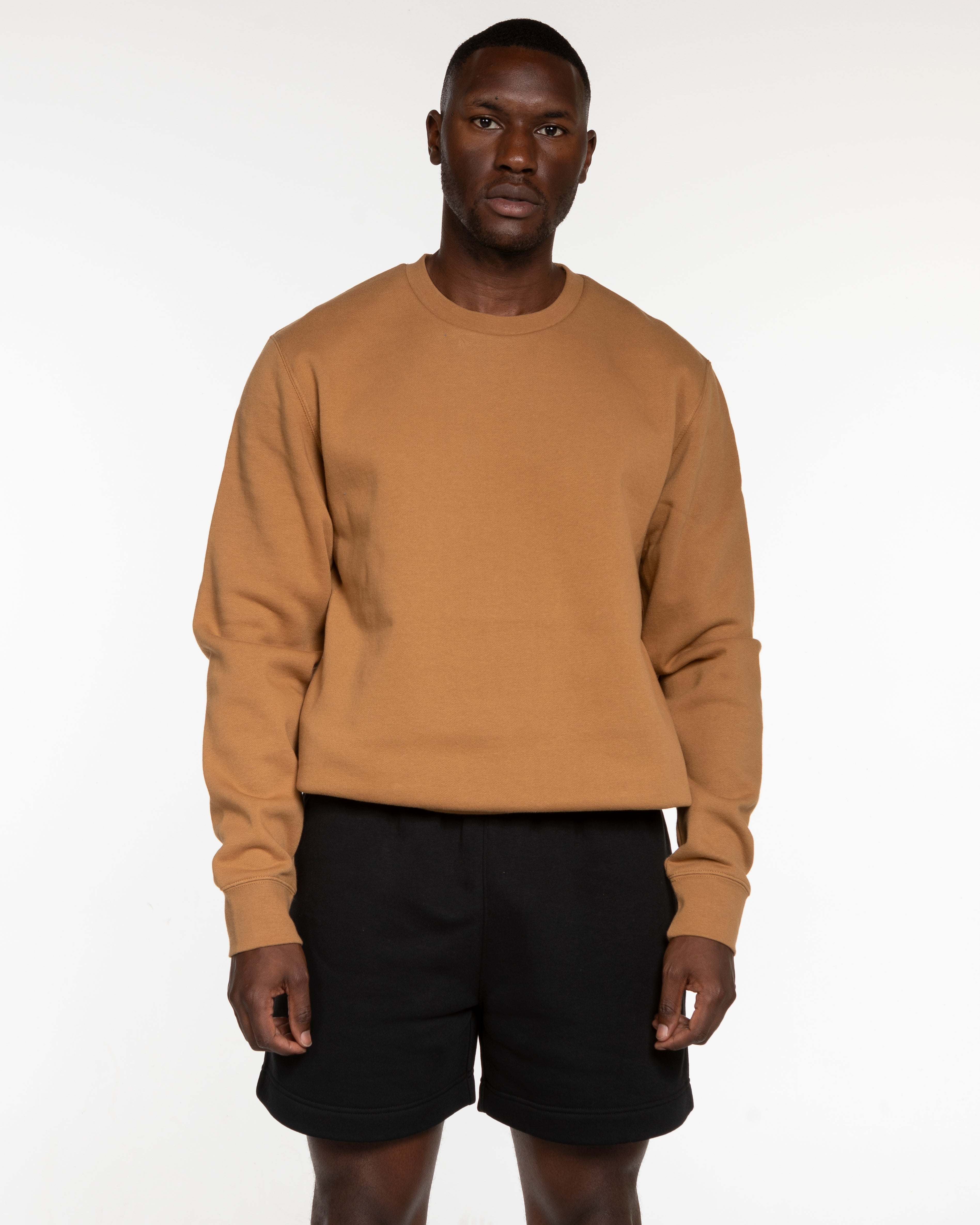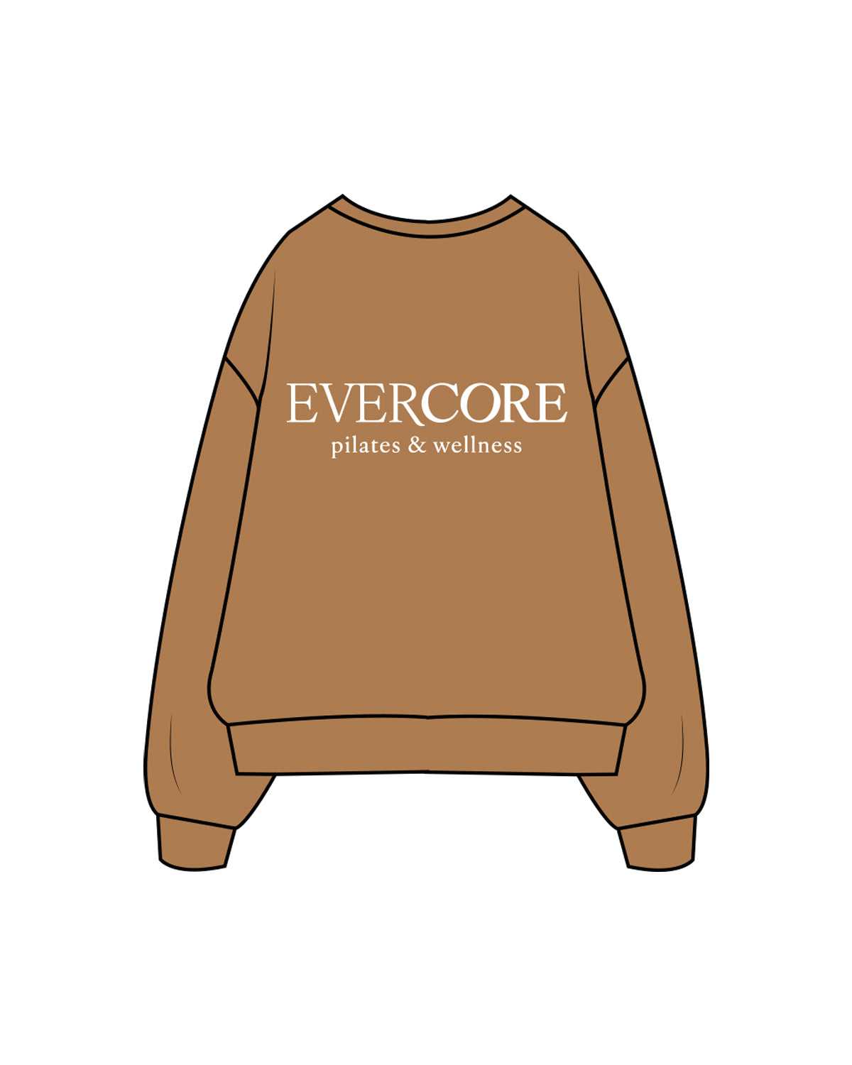 The Classic Crewneck - Camel - EVERCORE - Center Chest & Back Center Stacked - White
