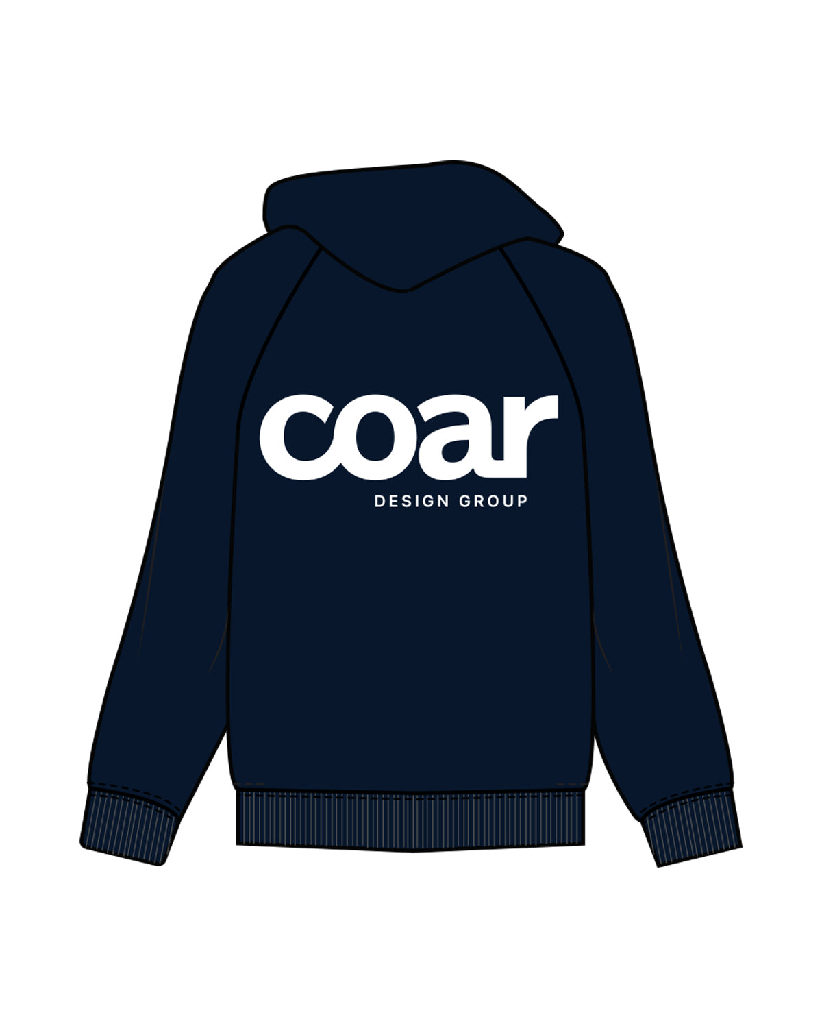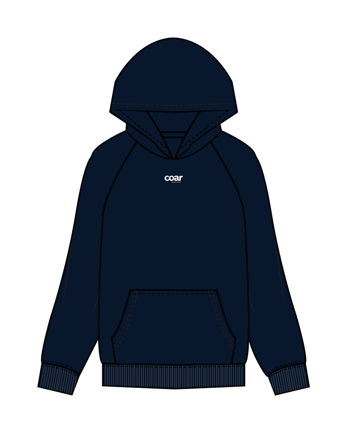 The Classic Hoodie - Navy - Coar - Center Chest & Back Center Stacked - White