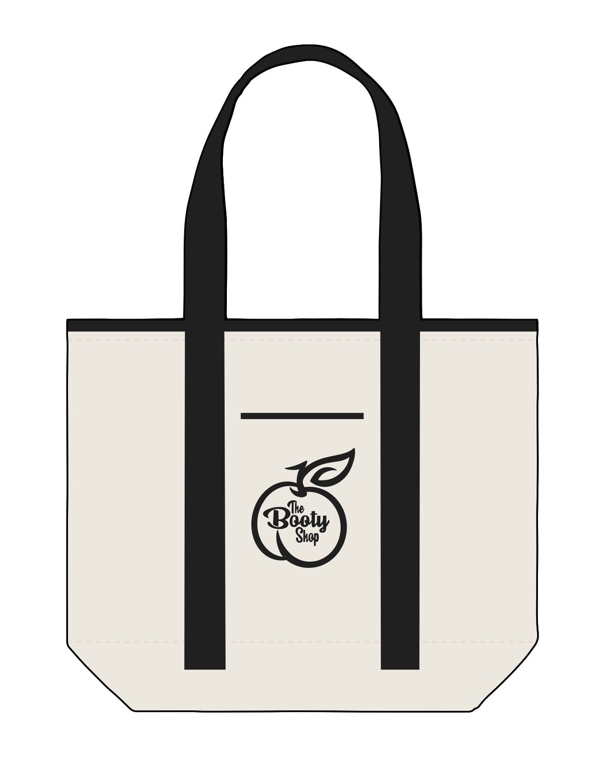The Contrast Tote Bag - Natural / Black - The Booty Shop - Center " Apple Icon " - Black