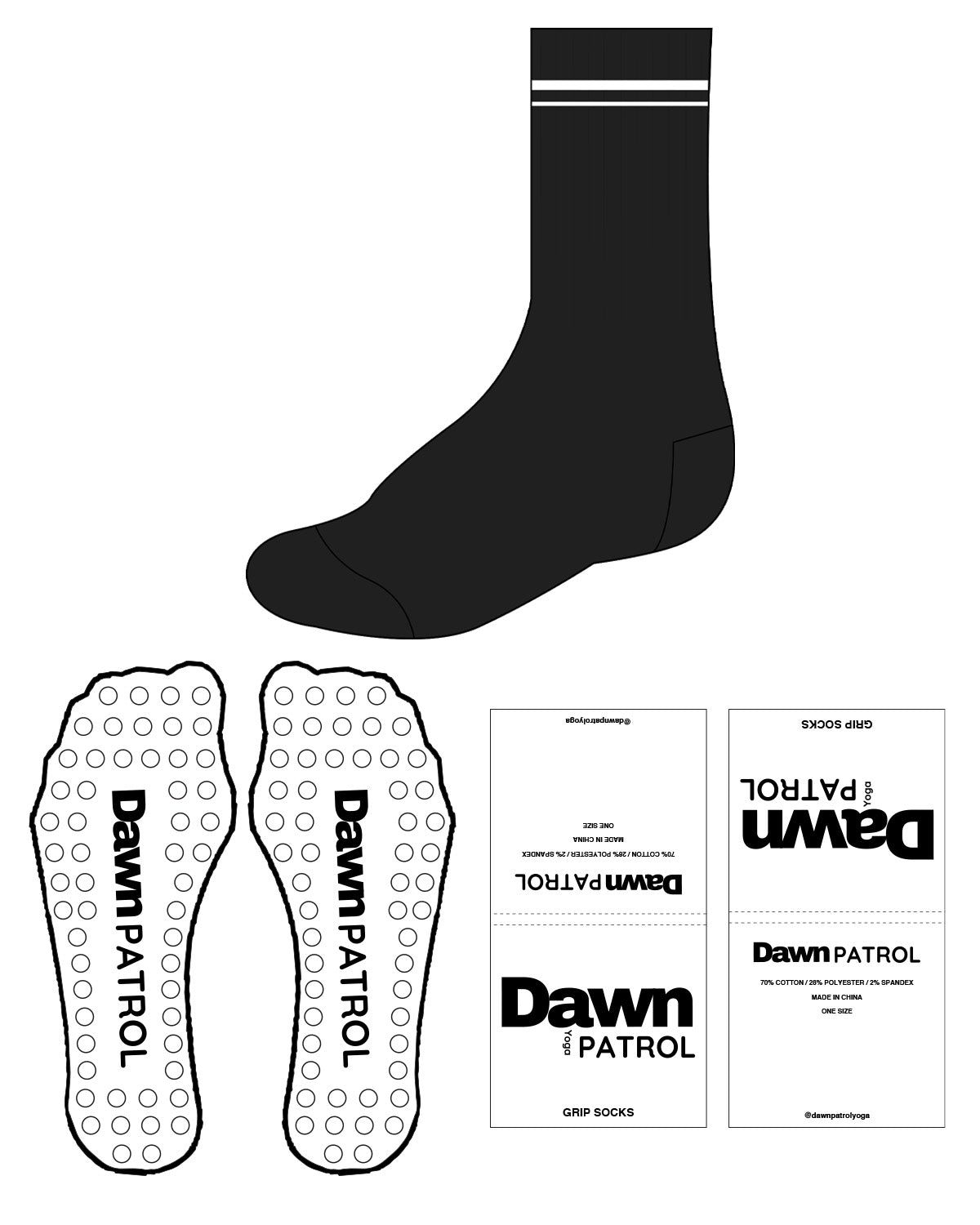 The Crew Sock - Black - Dawn Patrol - 2 White Lines - Circle Shape Grip - White Grip