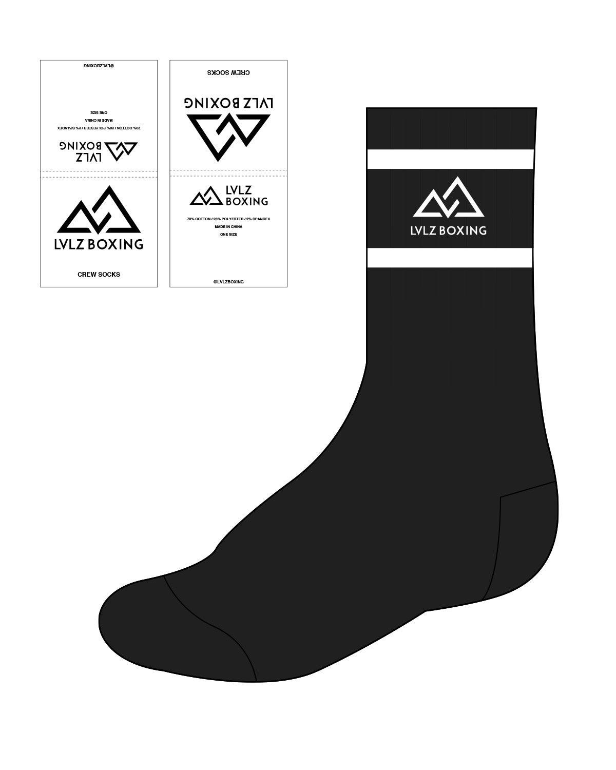 The Crew Sock - Black - Lvl Boxing - 2 White Lines - 2 Triangle - White