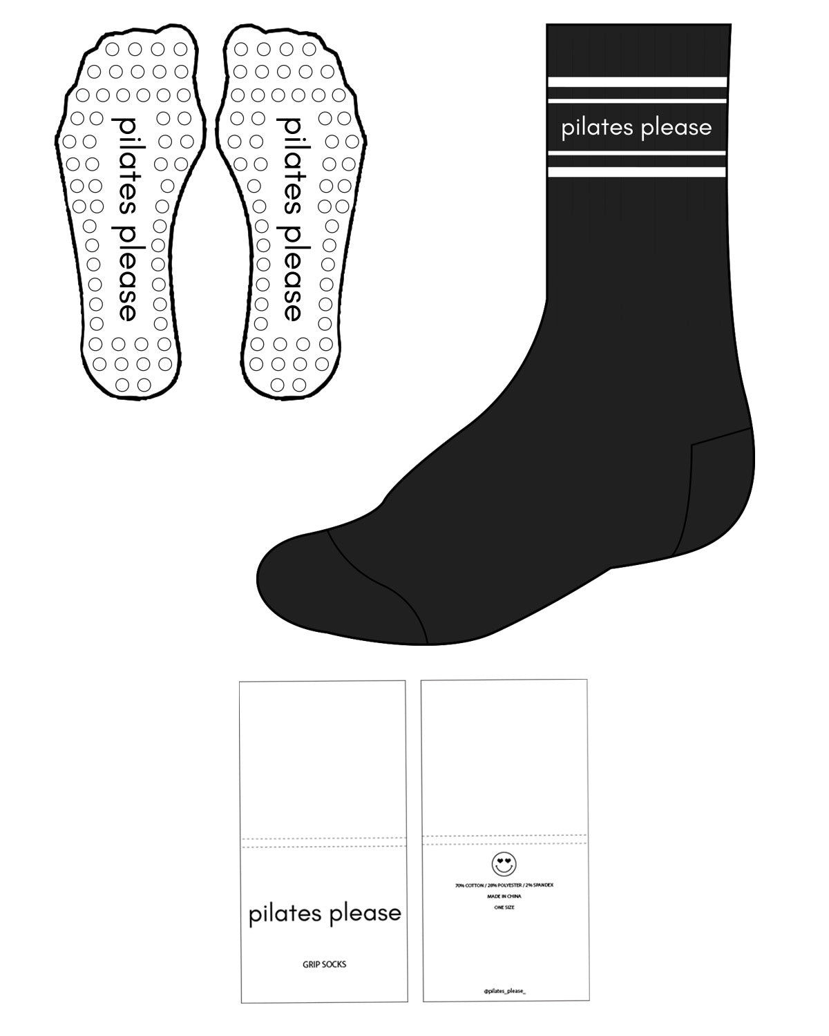 The Crew Sock - Black - Pilates by Nix - 4 Lines - Center - Small Letters - White - Grip - White