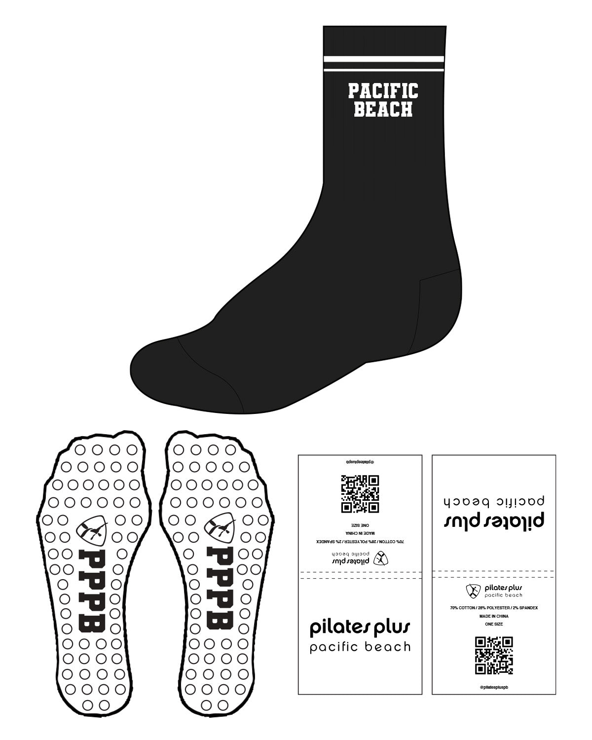 The Crew Sock - Black - Pilates Plus PB - Top Dual Border & Circle Grip - White