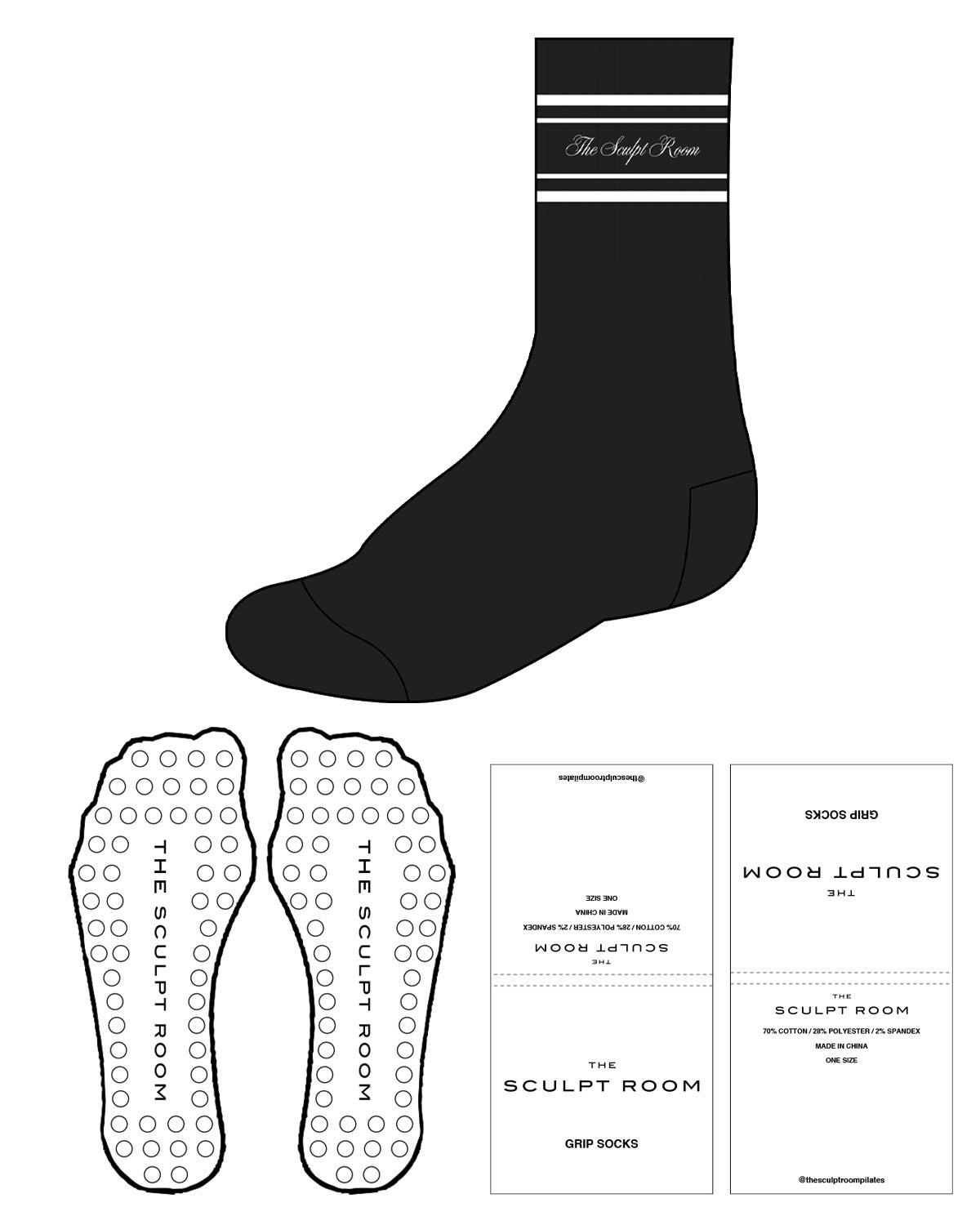 The Crew Sock - Black - Sculpt Room - 4 Lines - Center Text - White - Circle Shape Grip - White