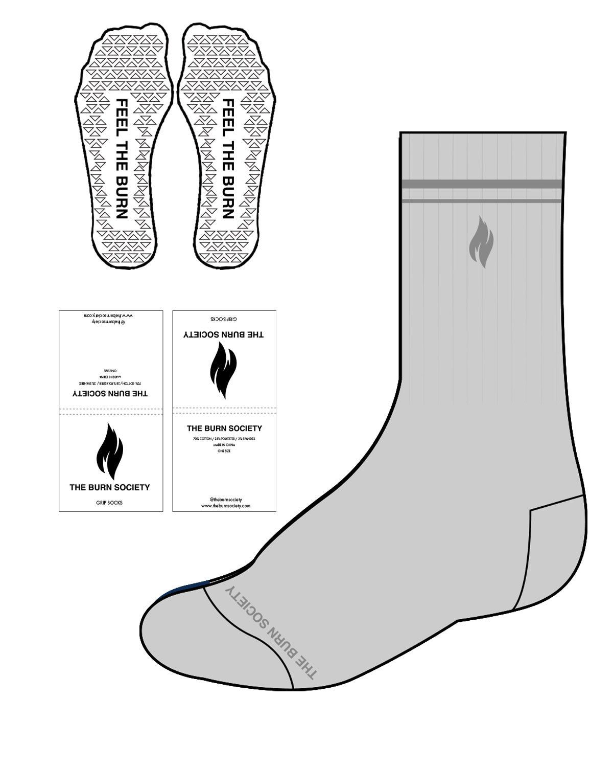 The Crew Sock - Heather - The Burn Society - Top Center Logo & Toes Center - Charcoal