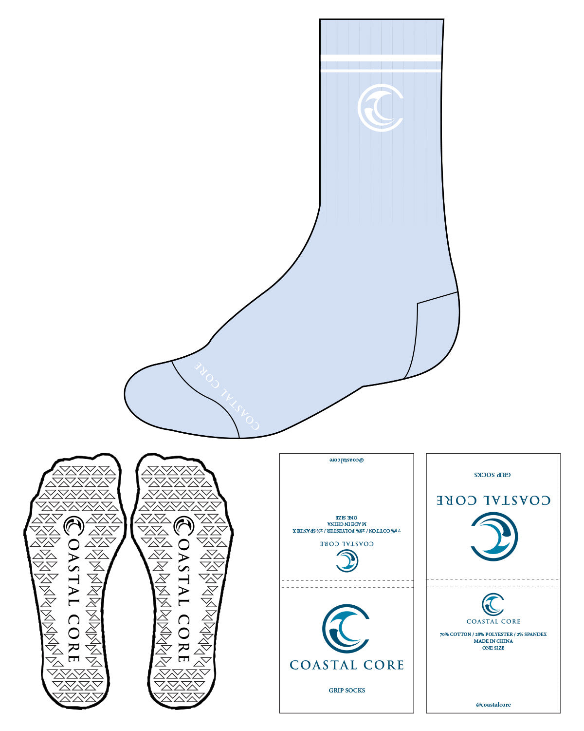 The Crew Sock - Light Blue - Coastal Core - Tip & Top Border - White Triangle Grip - White