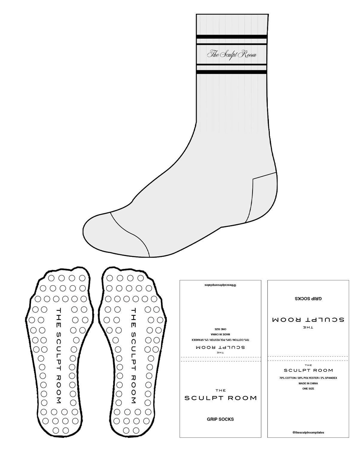 The Crew Sock - Light Heather Gray - Sculpt Room - 4 Lines - Center Text - Black - Circle Shape Grip - Black