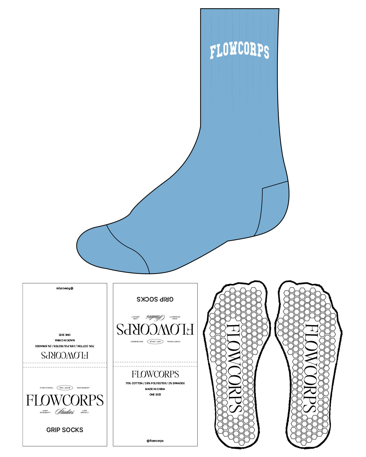 The Crew Sock - M54 Thread - Flowcorps - Top & White Hexagon Grip - White