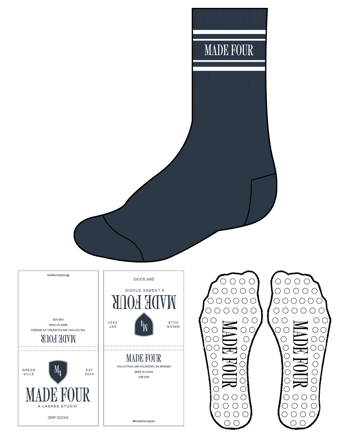 The Crew Sock - Navy - M4Lagree - Top Lining & Circle Grip - White