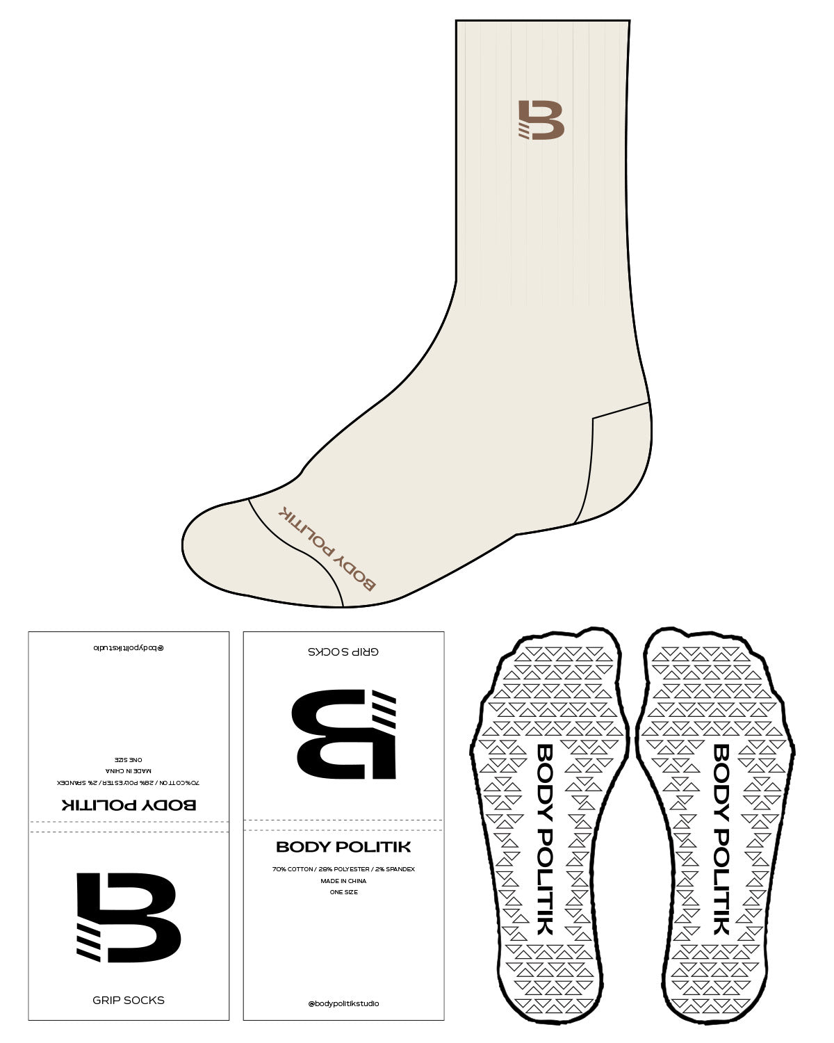 The Crew Sock - Off White - Body Politik - Tip & Side "B" - Transparent Triangle Grip - Embroidered Kraft