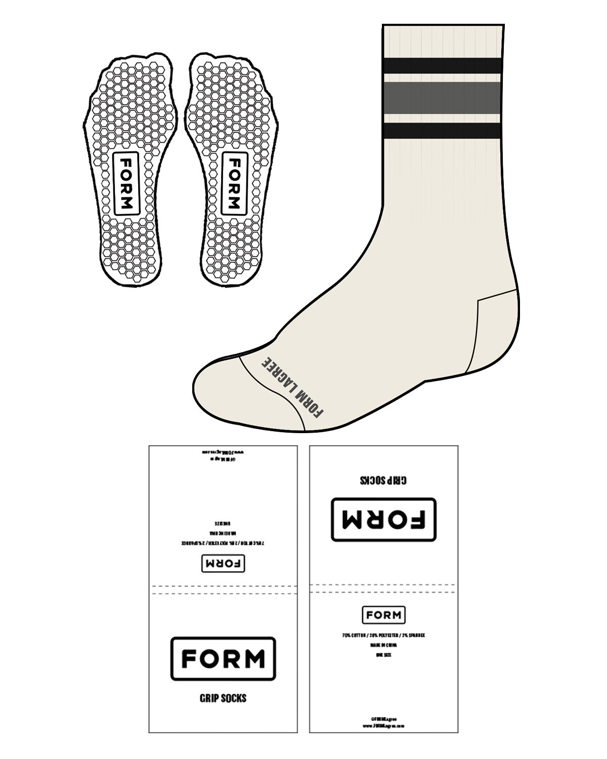 The Crew Sock - Off White - Form Lagree - Center - 3 Lines & Text - Bottom Center - Full Color - Hexagon - Form - Grip - Transparent