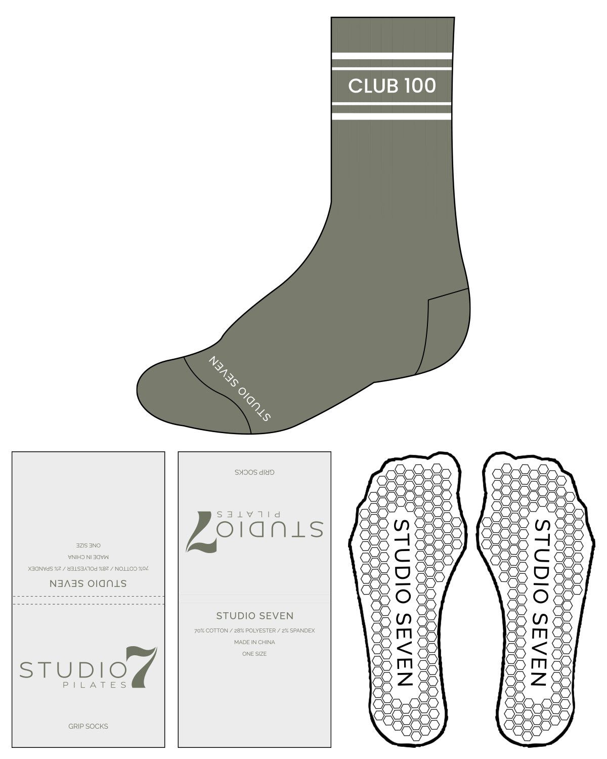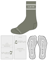 The Crew Sock - Sage Green - STUDIO 7 - Club 100 Front & Top Border - Transparent Hexagon Grip - White