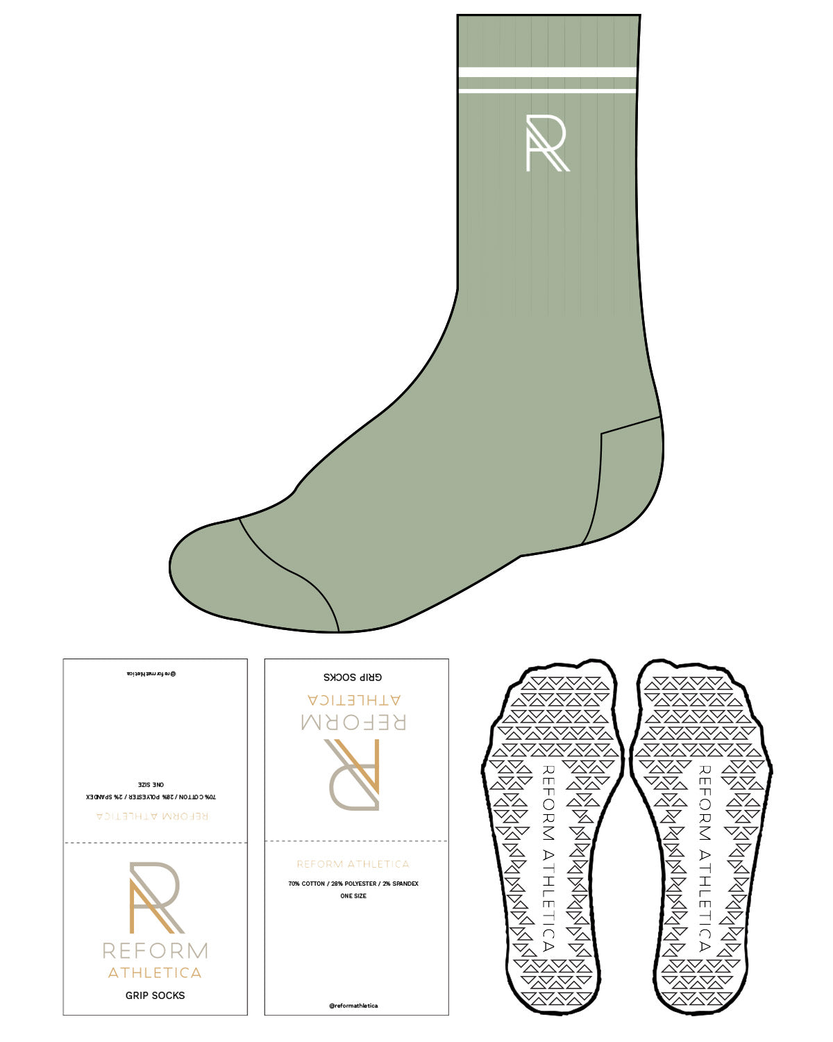 The Crew Sock - Sage - Reform Athletica - White 'R' - Grip - White
