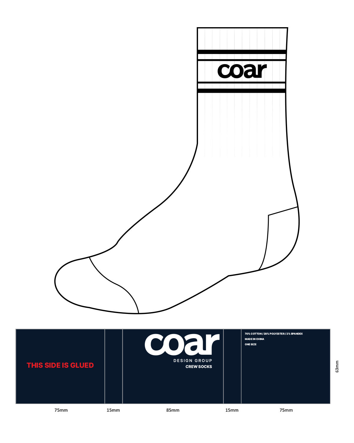 The Crew Sock - White - Coar - Top Double Lining - Black