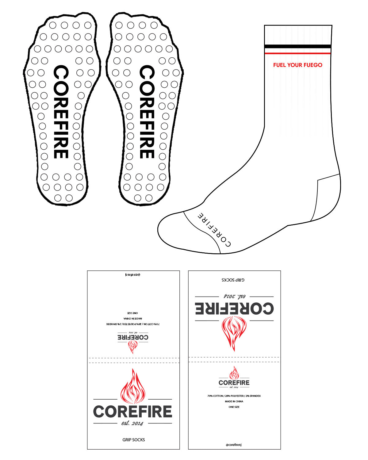 The Crew Sock - White - Corefire - Below Black & Red Lines Font & Bottom Toe Center - Full Color