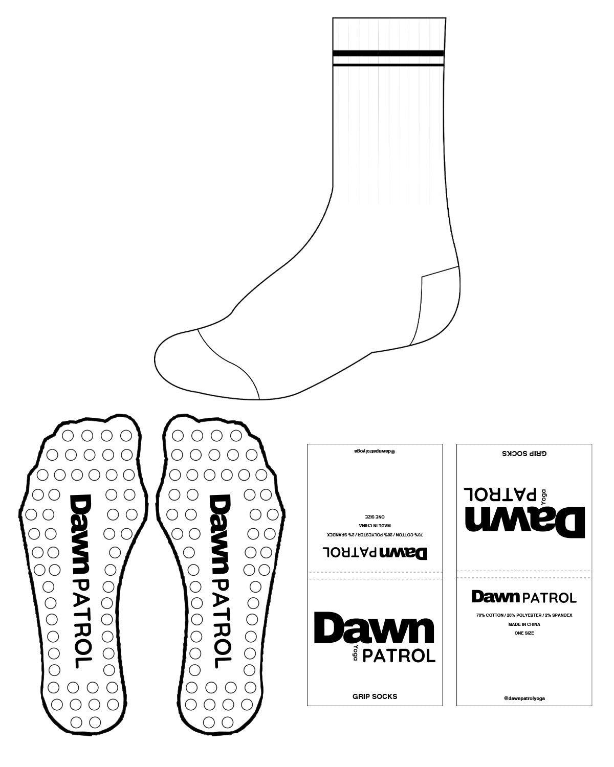 The Crew Sock - White - Dawn Patrol - 2 Black Lines - Circle Shape Grip - Black Grip