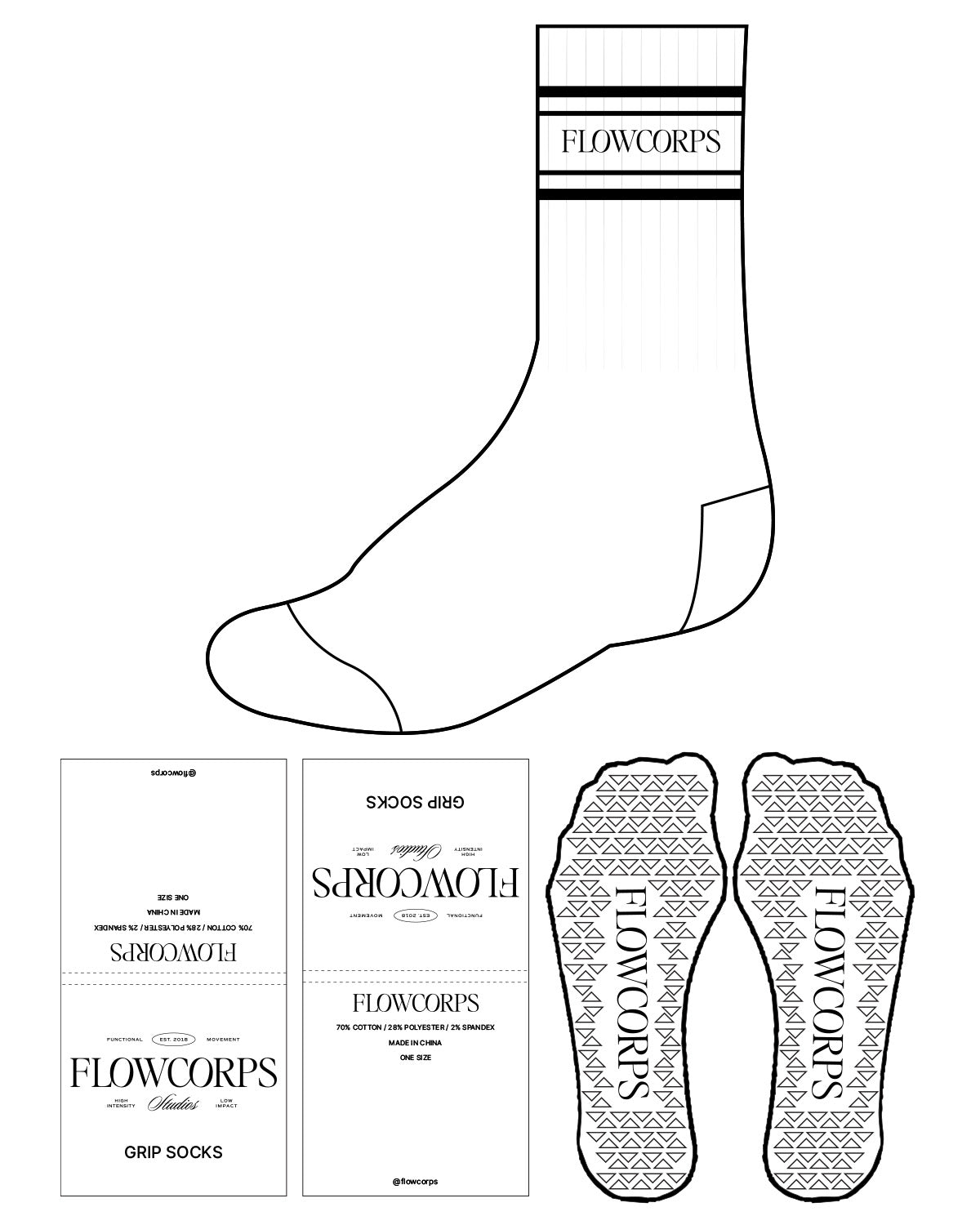 The Crew Sock - White - Flowcorps - Top Dual Border - Triangle Grip - Black