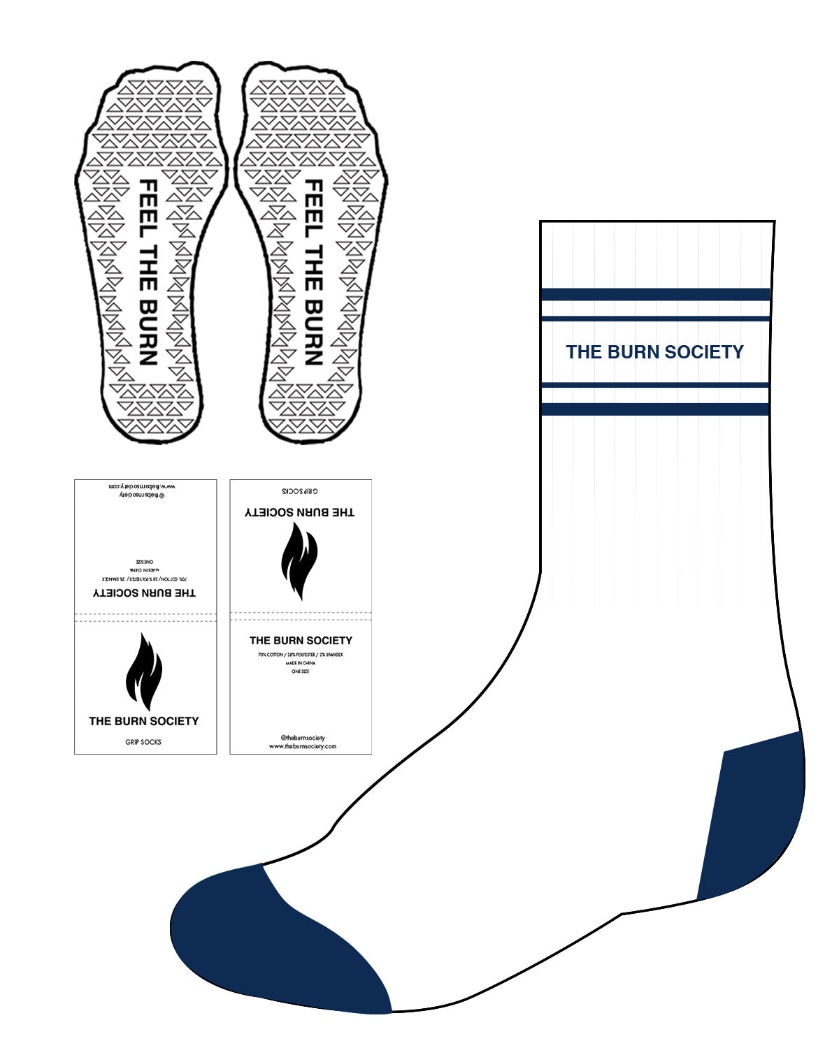 The Crew Sock - White - The Burn Society - In Between Blue White / White Blue Lines Top Center - Navy