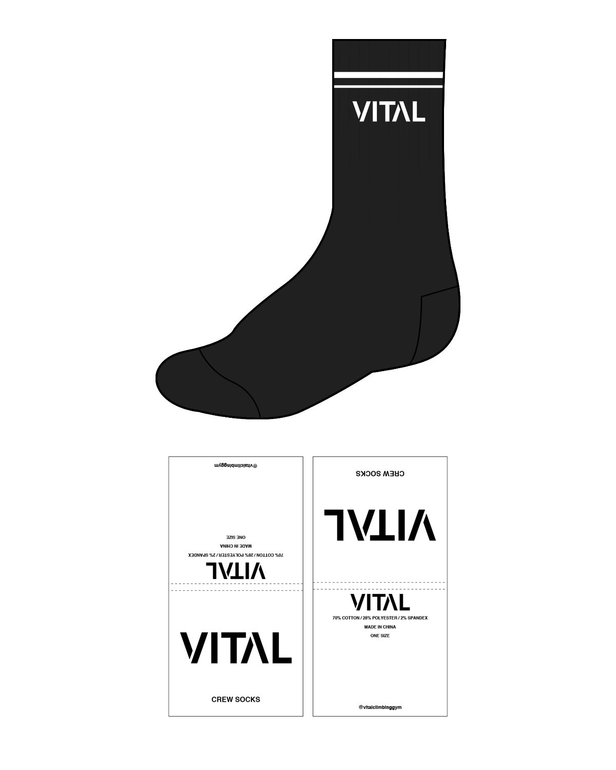 The Crew Sock - Black - Vital Climbing Gym - 2 Lines - Text Horizontal - White