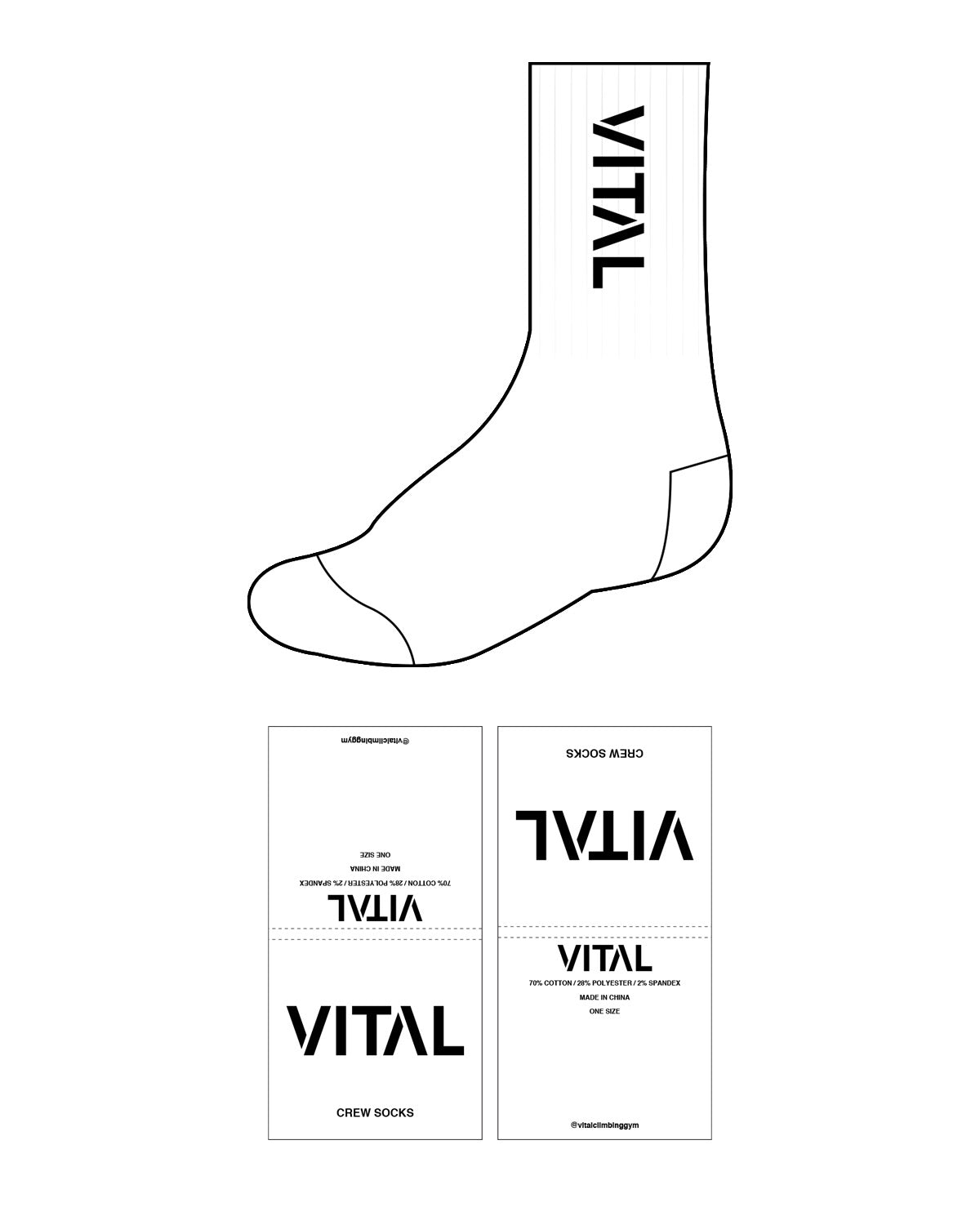The Crew Sock - White - Vital Climbing Gym - Text Vertical - Black