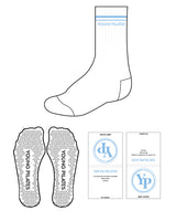 The Crew Sock - White - YP - Top Border & Blue Triangle Grip - Blue