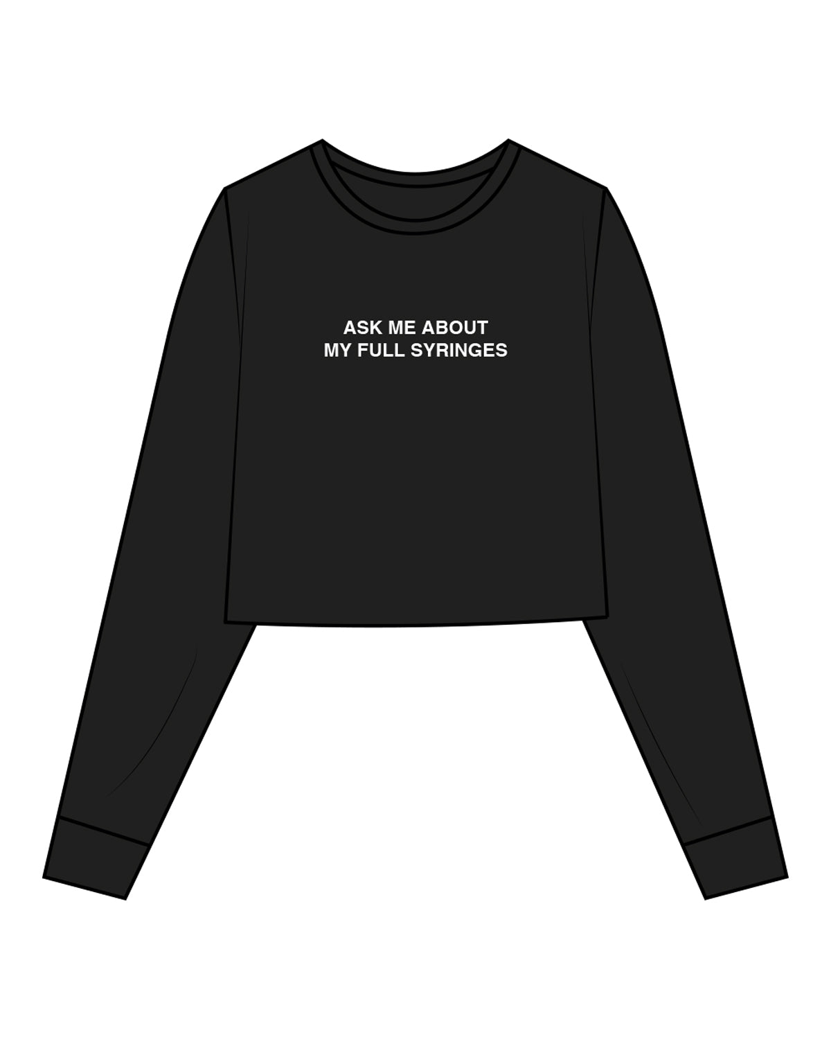 The Crop Long Sleeve - Black - Aesthetics Injector - Center Chest " ASK ME " - White