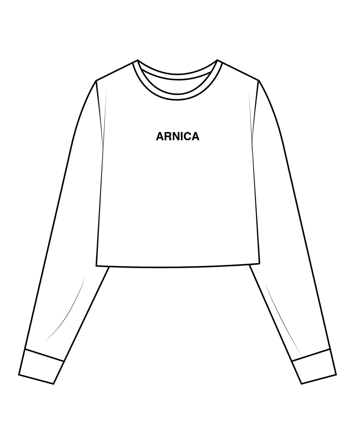 The Crop Long Sleeve - White - Aesthetics Injector - Center Chest " ARNICA " - Black