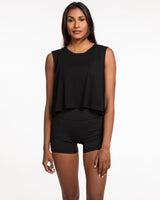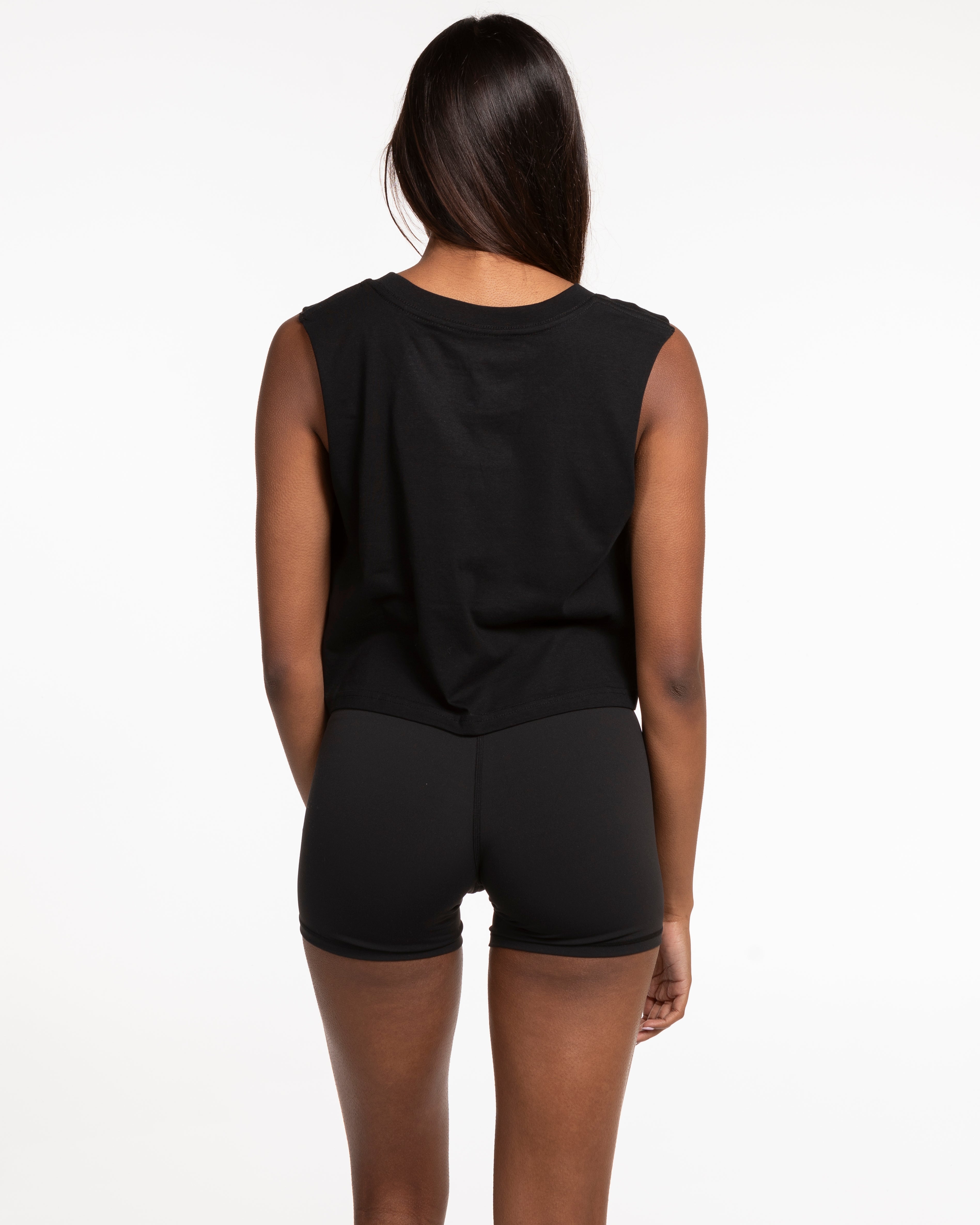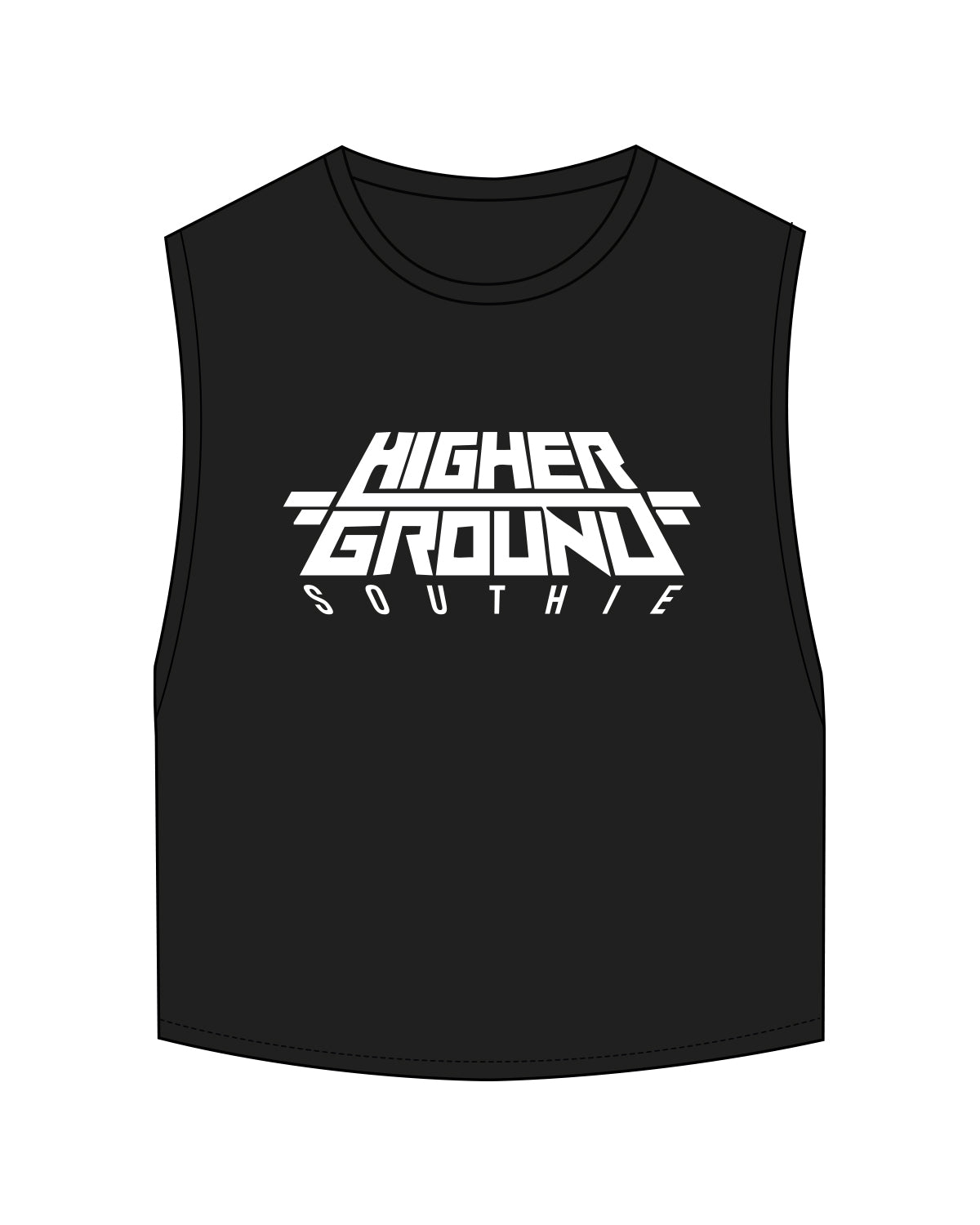 The Crop Muscle Tank - Black - Higher Ground - " SOUTHIE" Center Chest Stacked - White