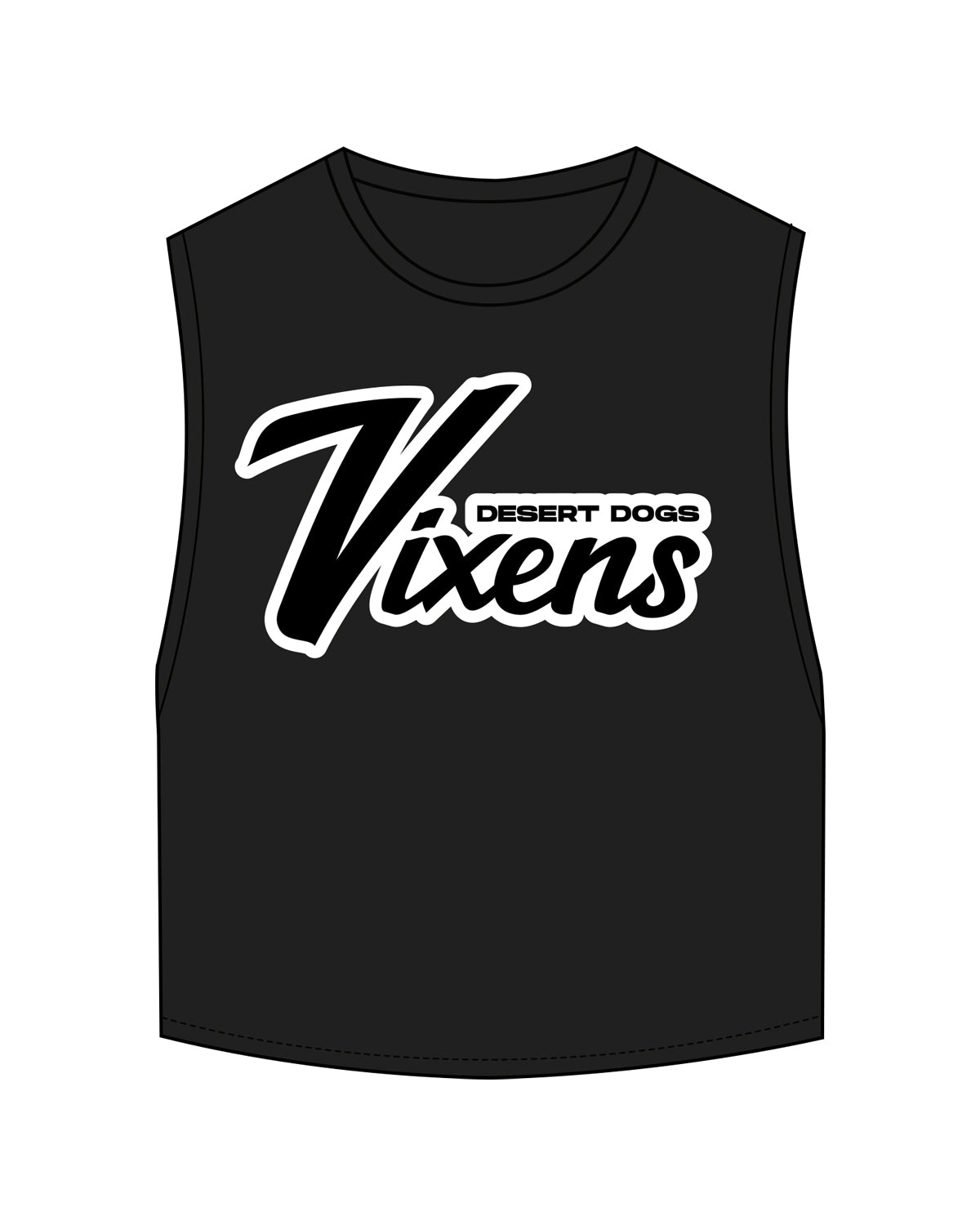 The Crop Muscle Tank - Black - LV Desert - Center Chest Stacked & Back Center Neckline - Full Color