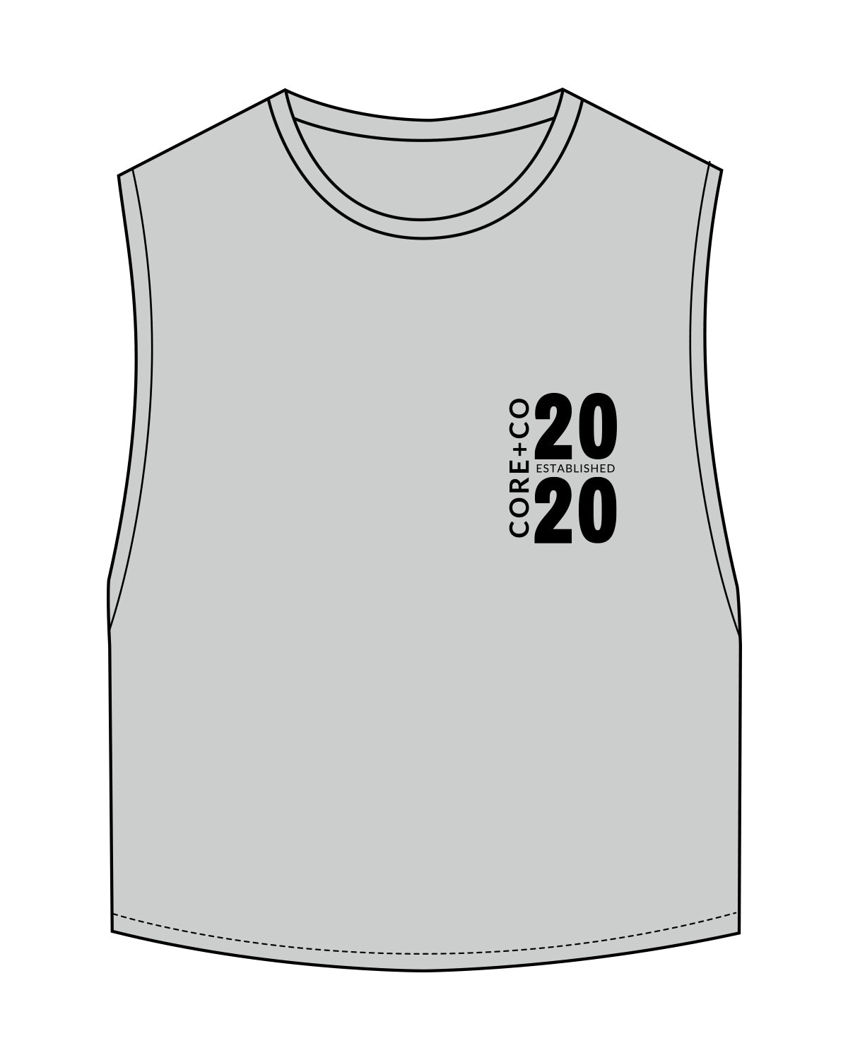 The Crop Muscle Tank - Storm - Core&Co - Left Chest Stacked - Black