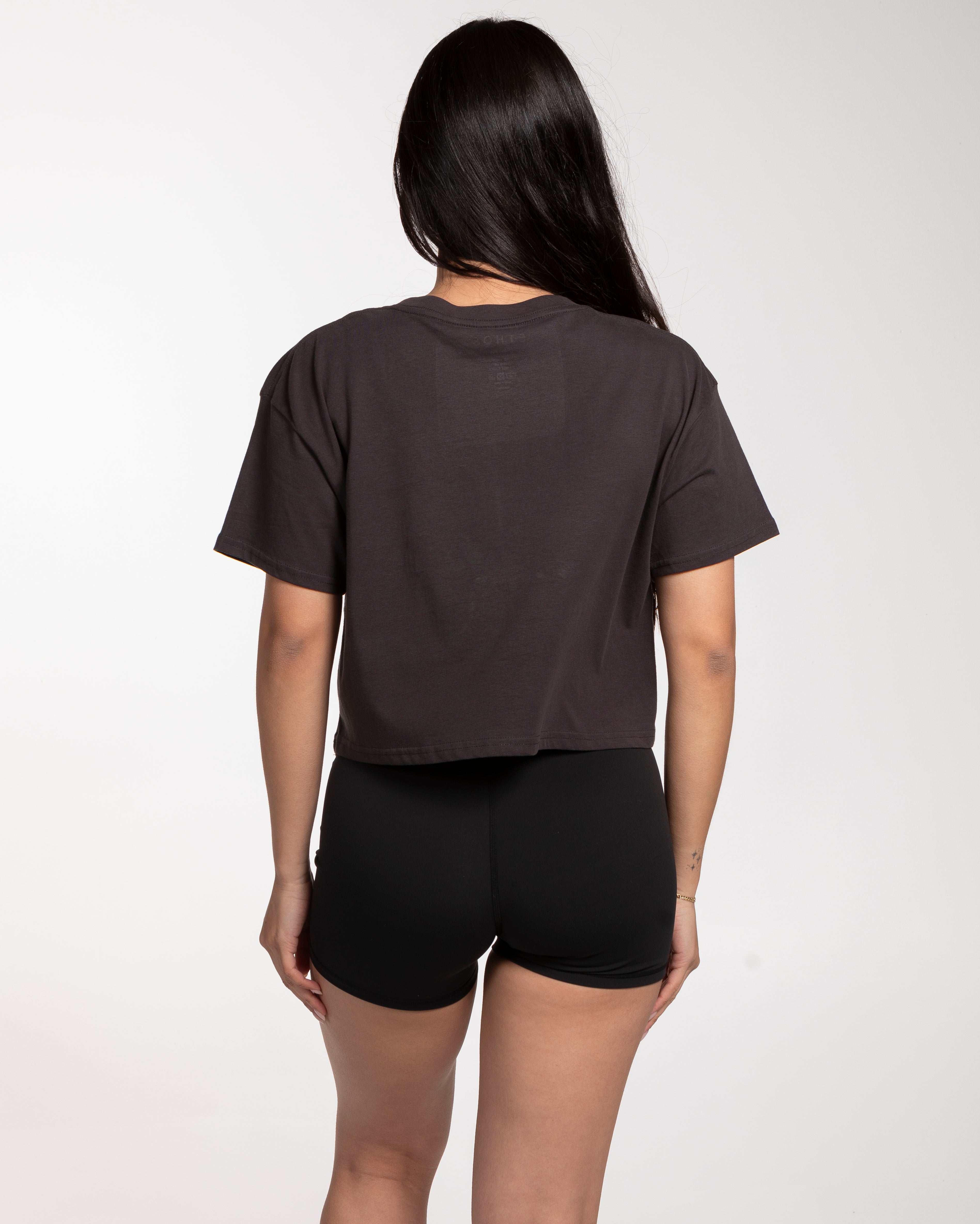 The Crop Tee - Charcoal - Marcus Abraham - Left Chest - Black