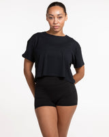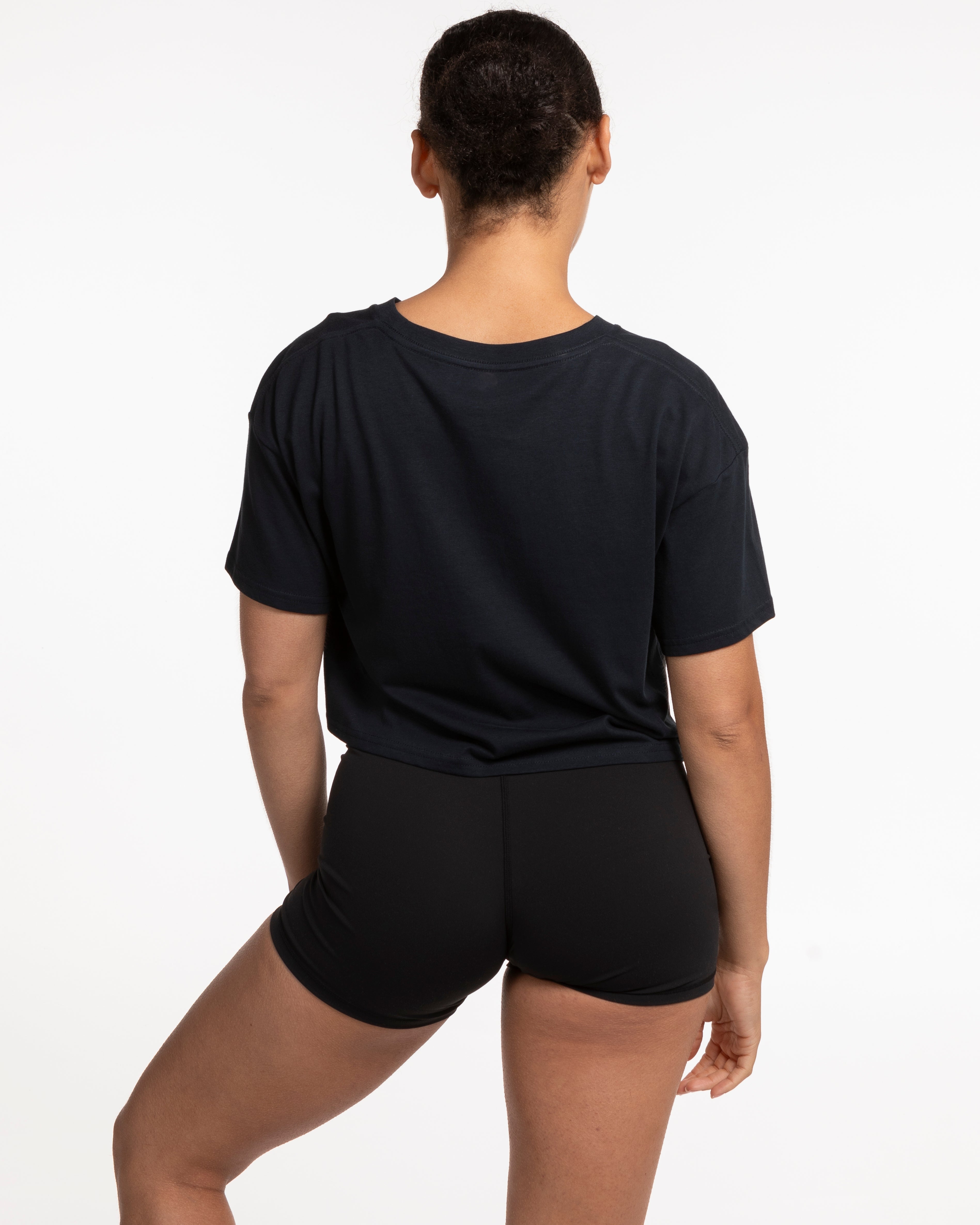 The Crop Tee - Navy - M4Lagree - Left Chest Stacked - Light Blue