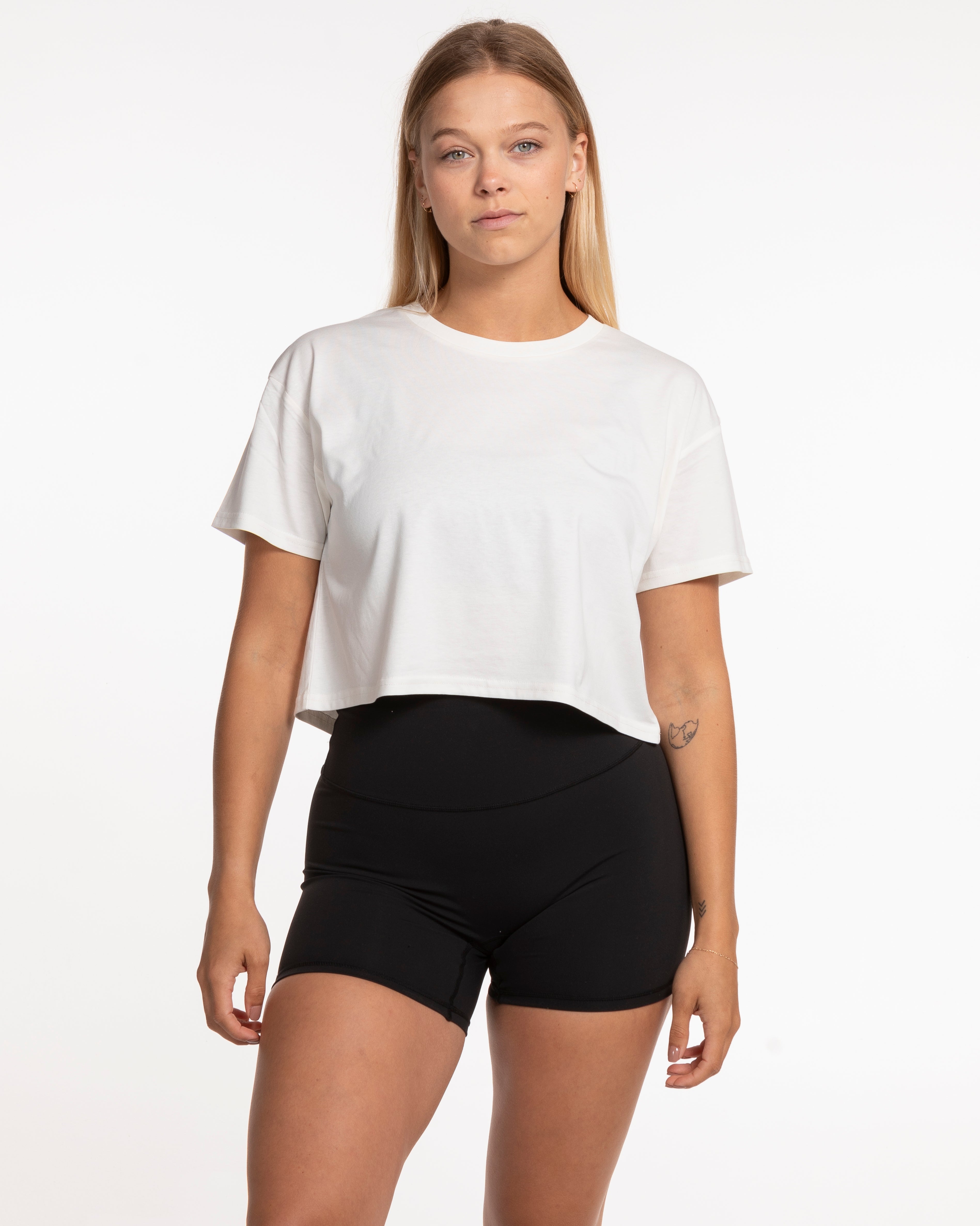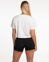 The Crop Tee - Off White - HiLo - Center Chest Elevate & Back Center Stacked - Charcoal
