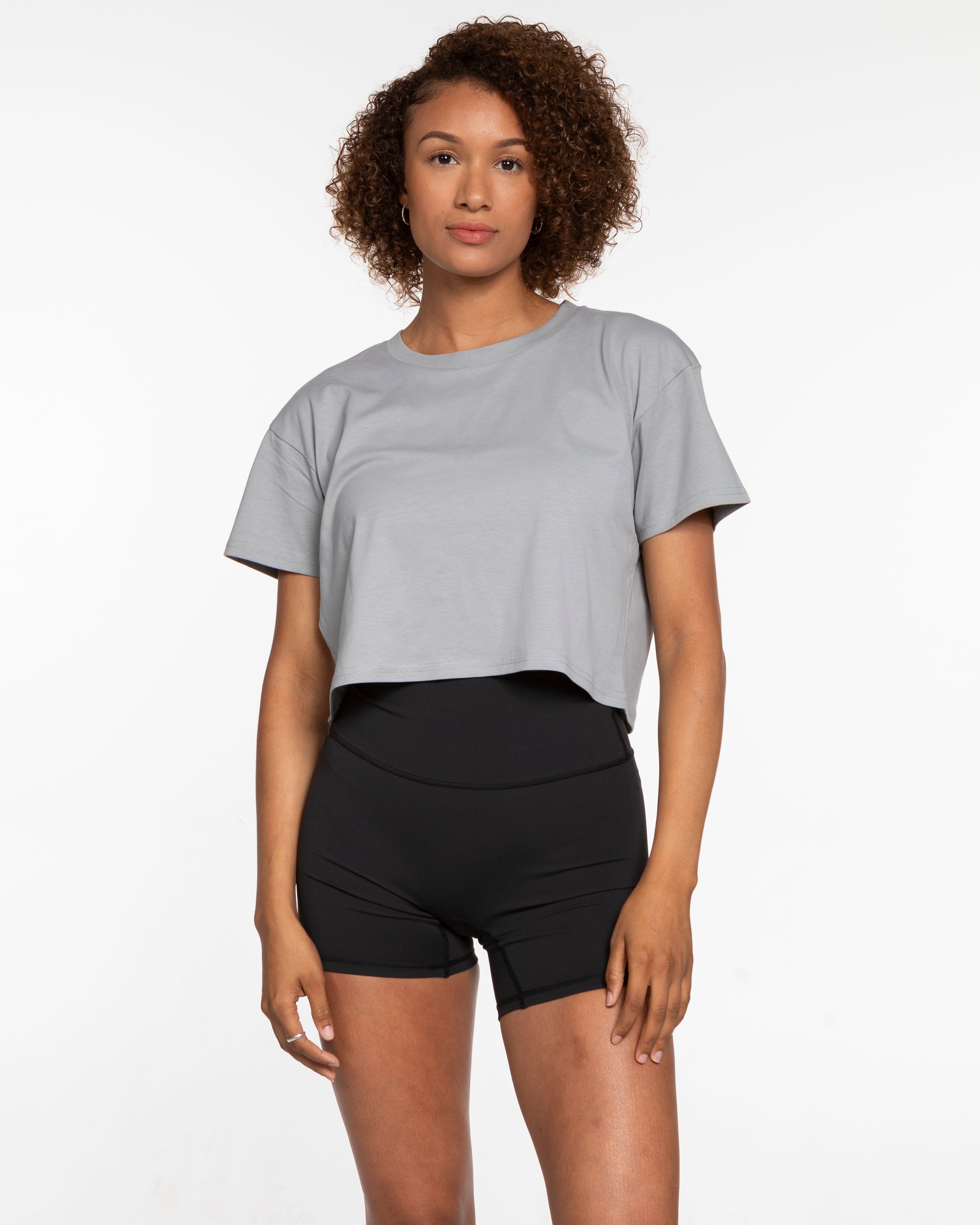 The Crop Tee - Storm - Coastal Core Oceanside - Left Chest - Black