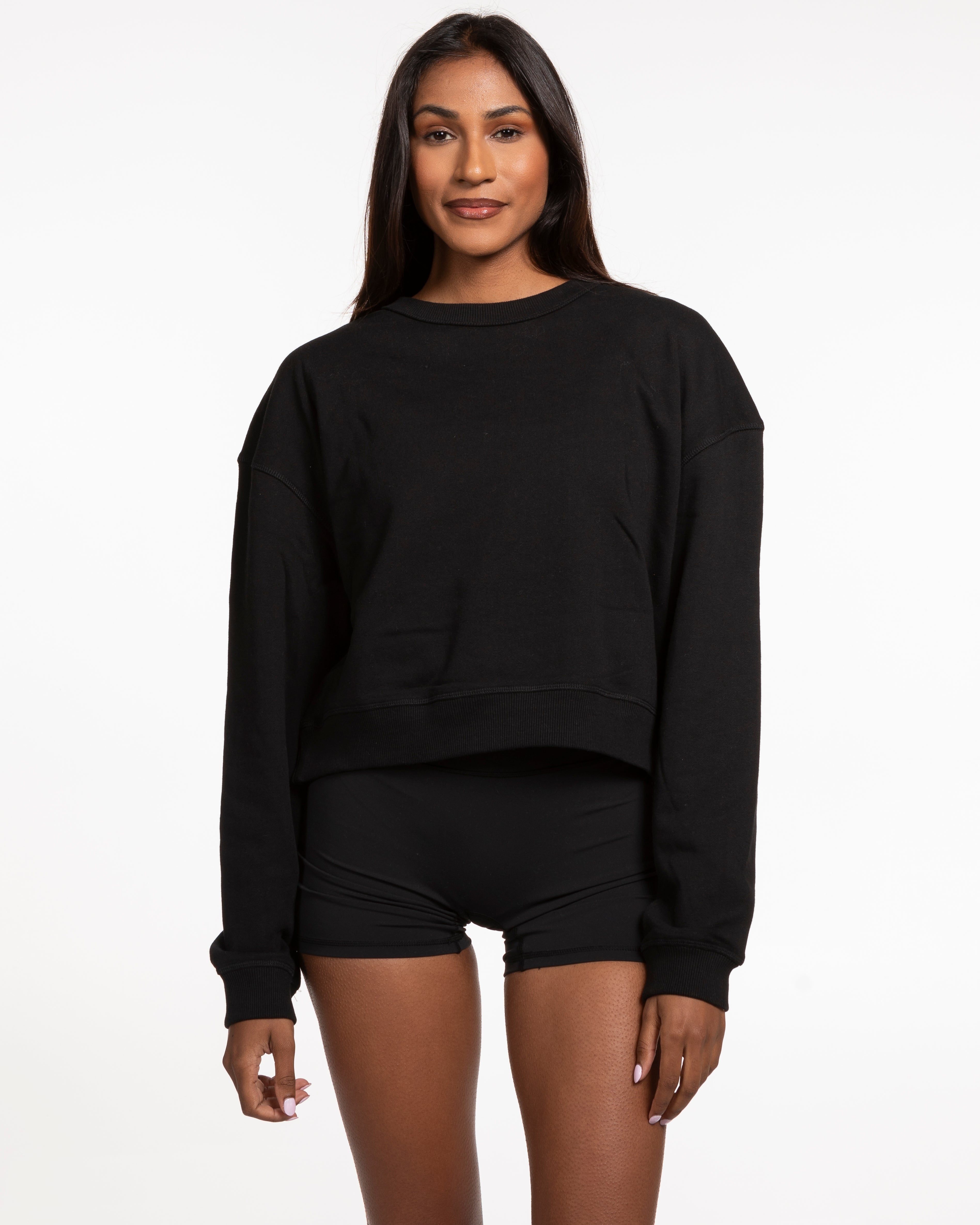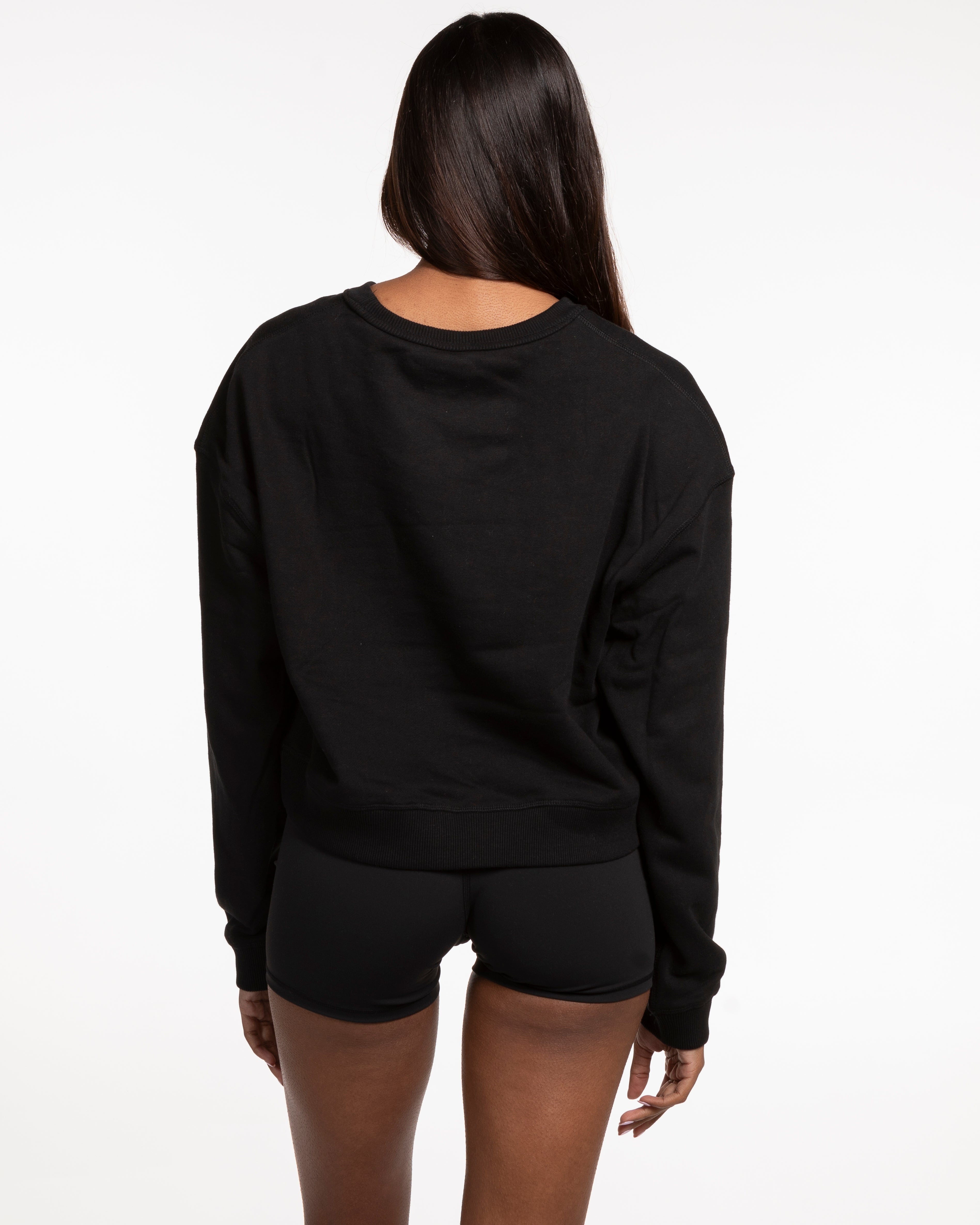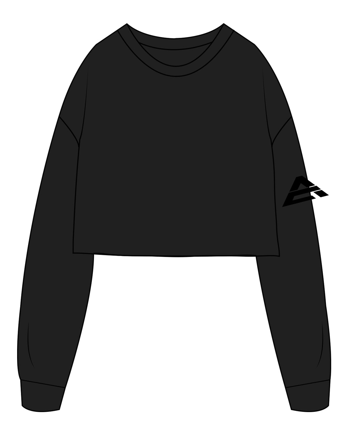 The Crop Terry Crewneck - Black - Athletic Culture - Left Sleeve - Black