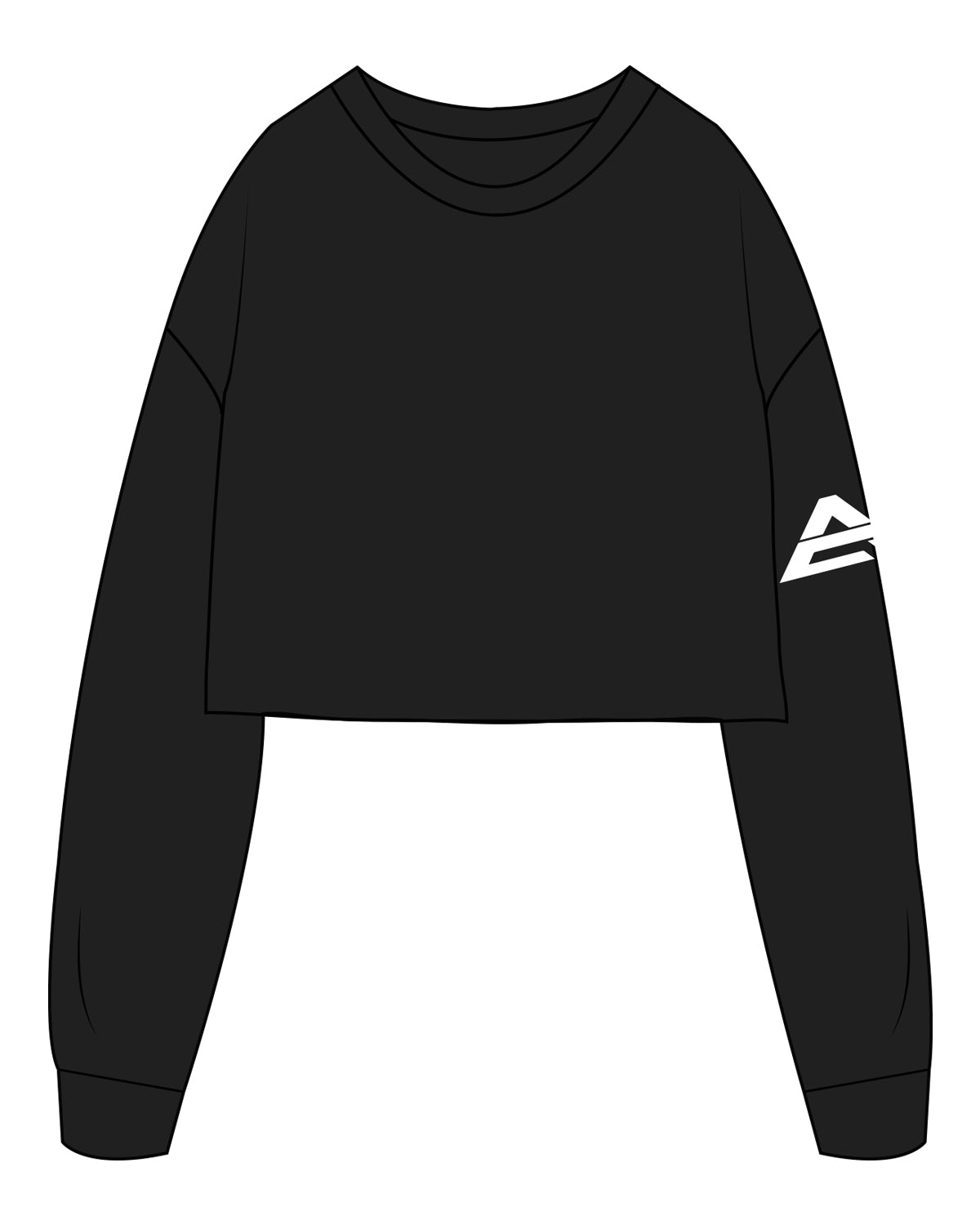 The Crop Terry Crewneck - Black - Athletic Culture - Left Sleeve - White