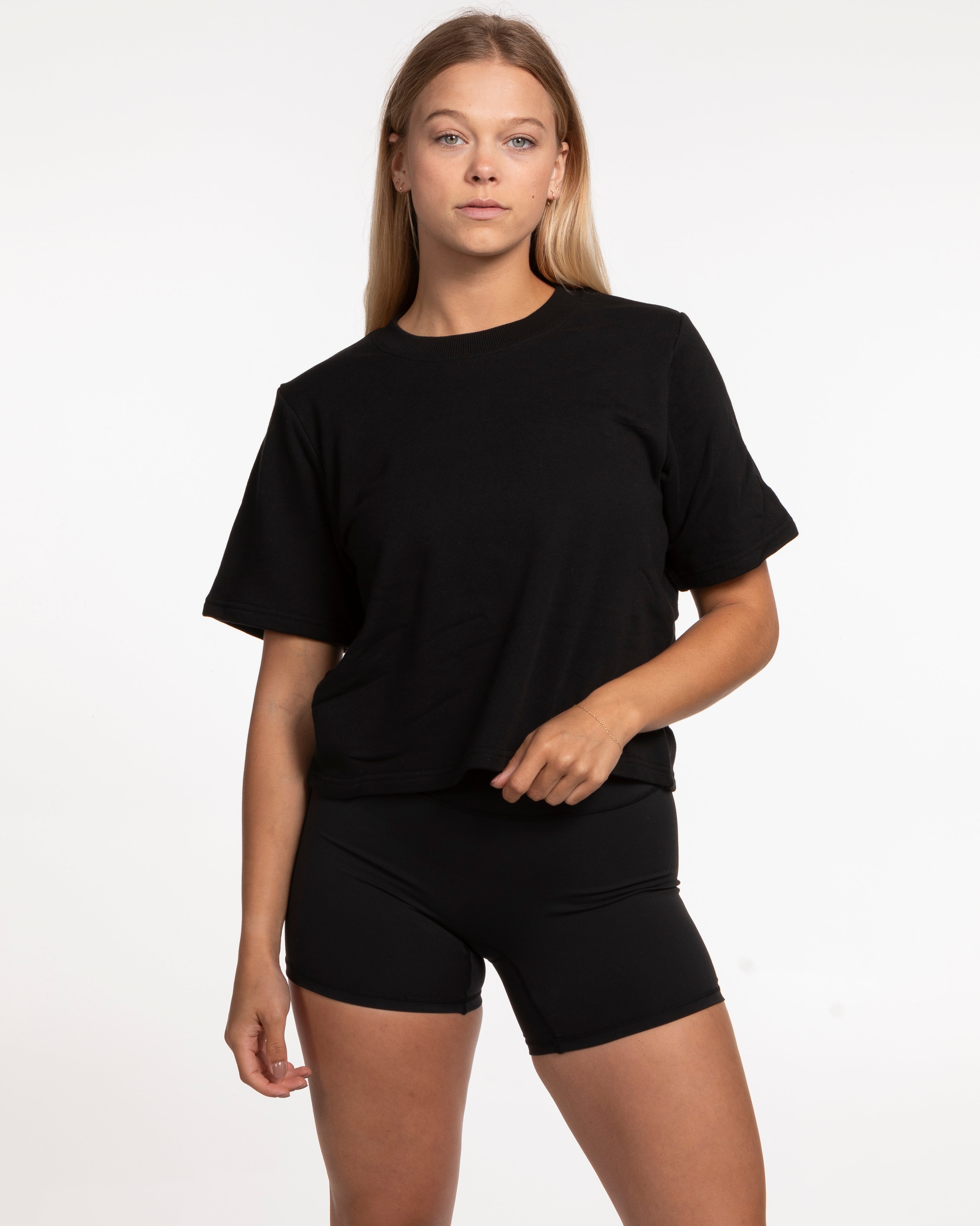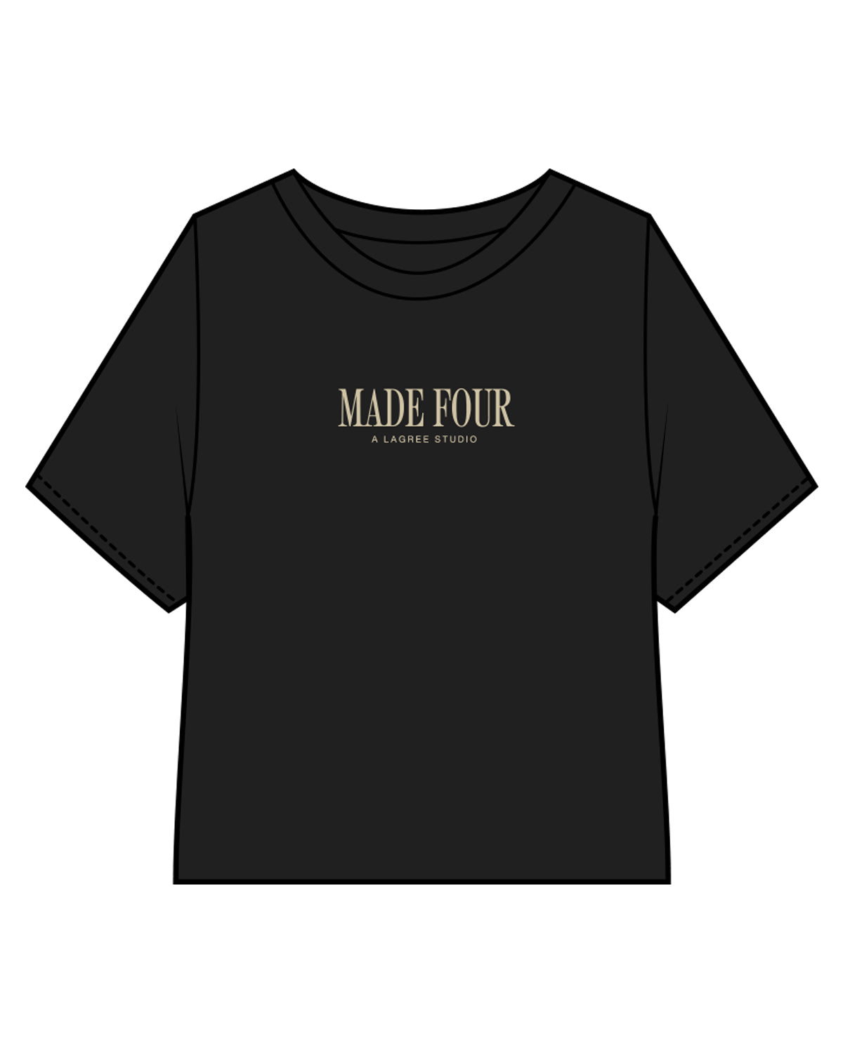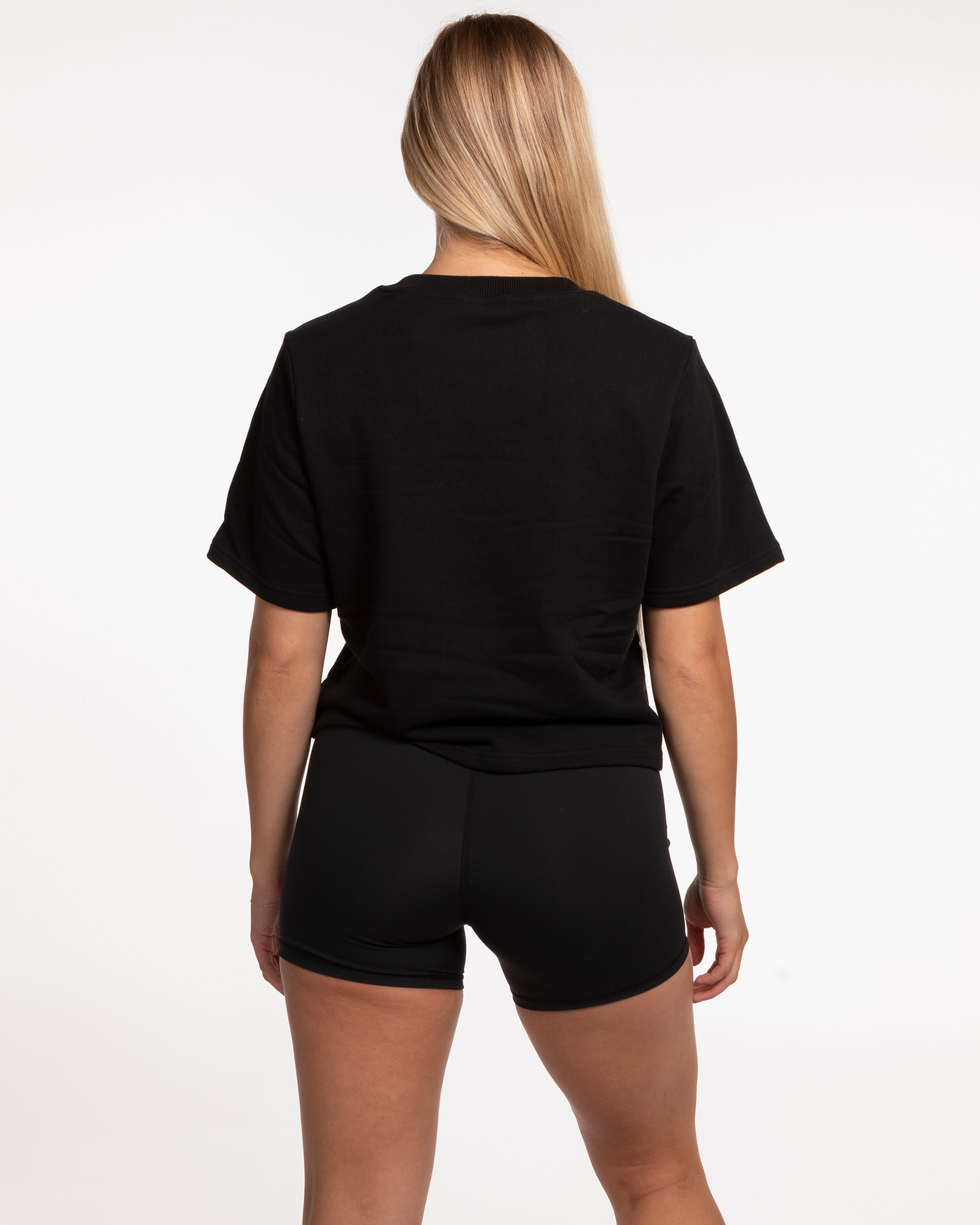 The Crop Terry Tee - Black - M4Lagree - Center Chest Stacked - Embroidered Cream