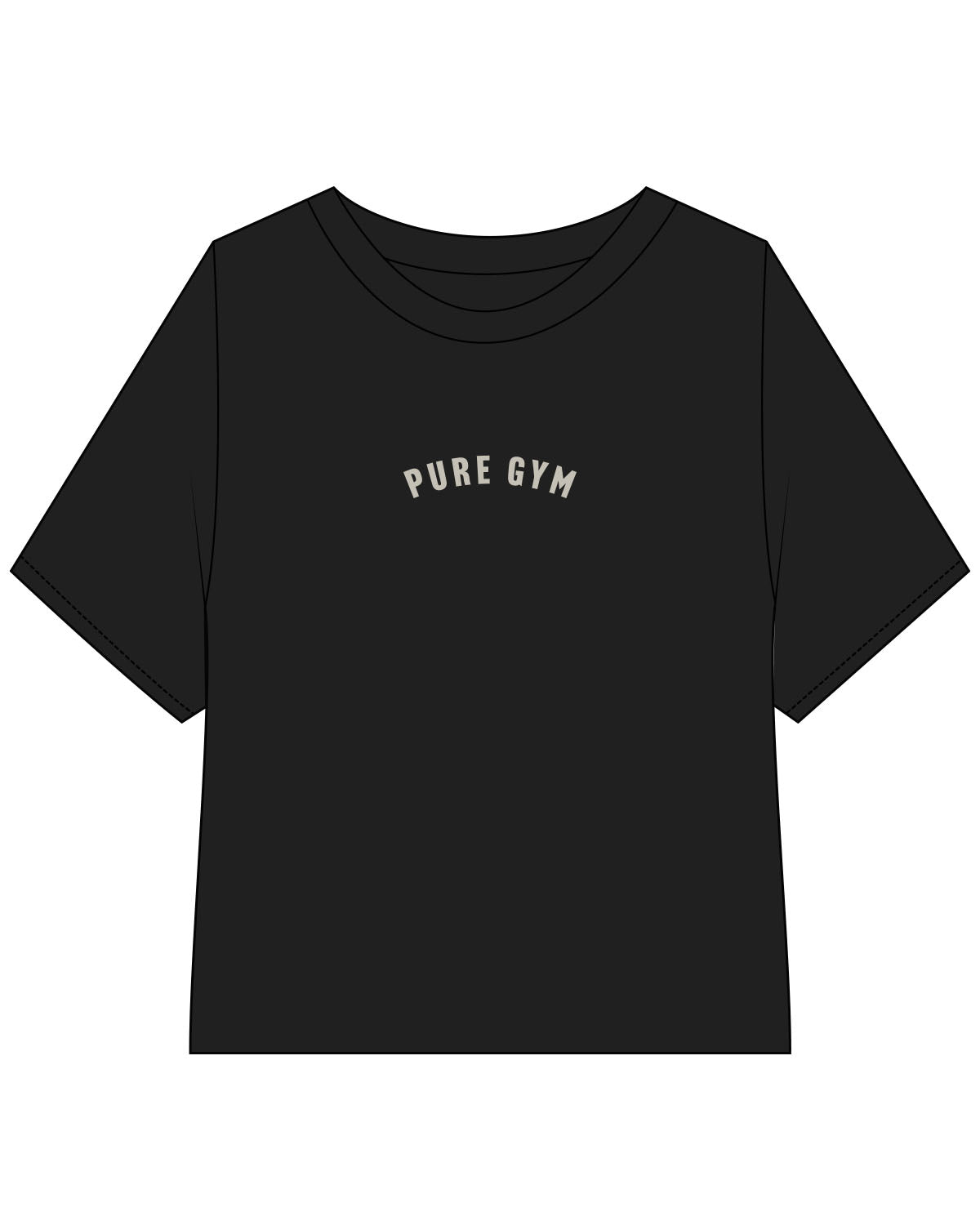 The Crop Terry Tee - Black - Pure Movement - Center Chest - Embroidered - Bone