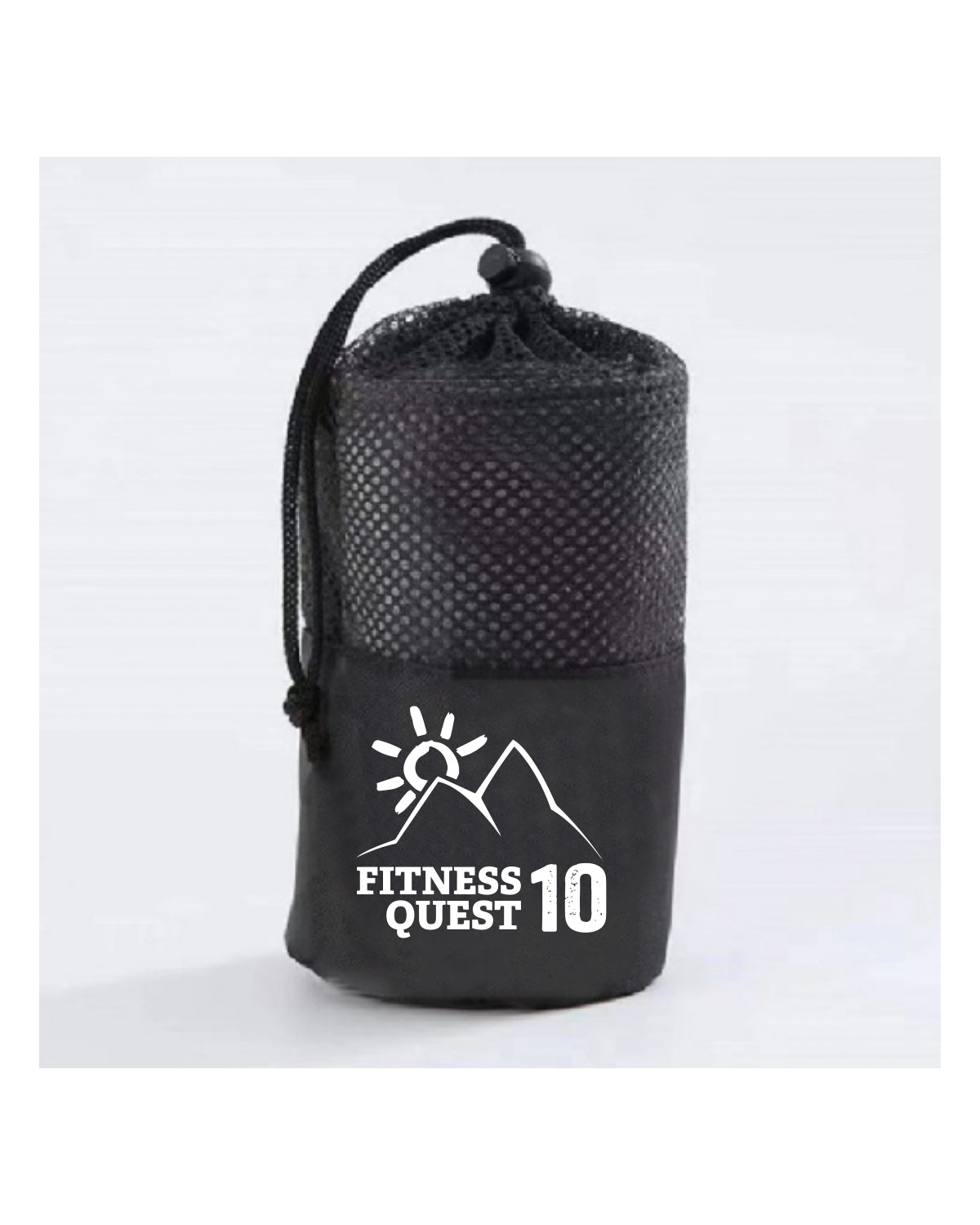 The Gym Towel - Black - Fitness Quest 10 - Bottom - Embroidered White
