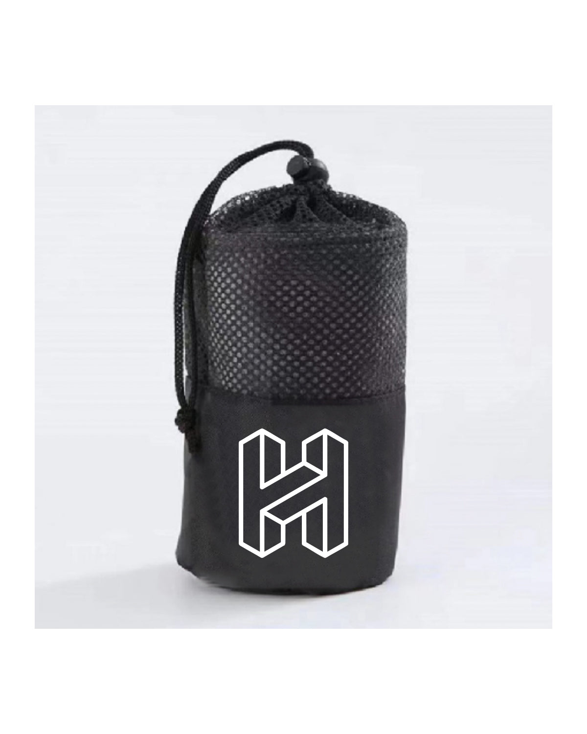 The Gym Towel - Black - Heat Bootcamp - Bottom Center with Bag- White