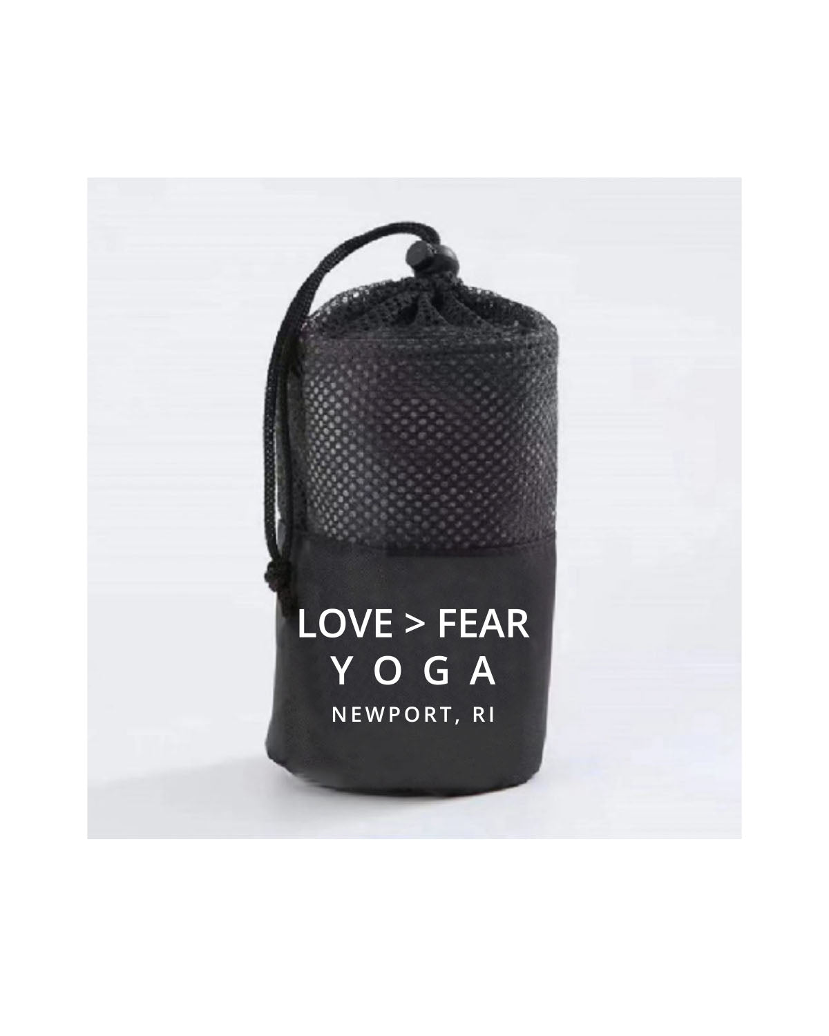 The Gym Towel - Black - Love > Fear - Center - Embroidered - Bag - Center Stacked - White